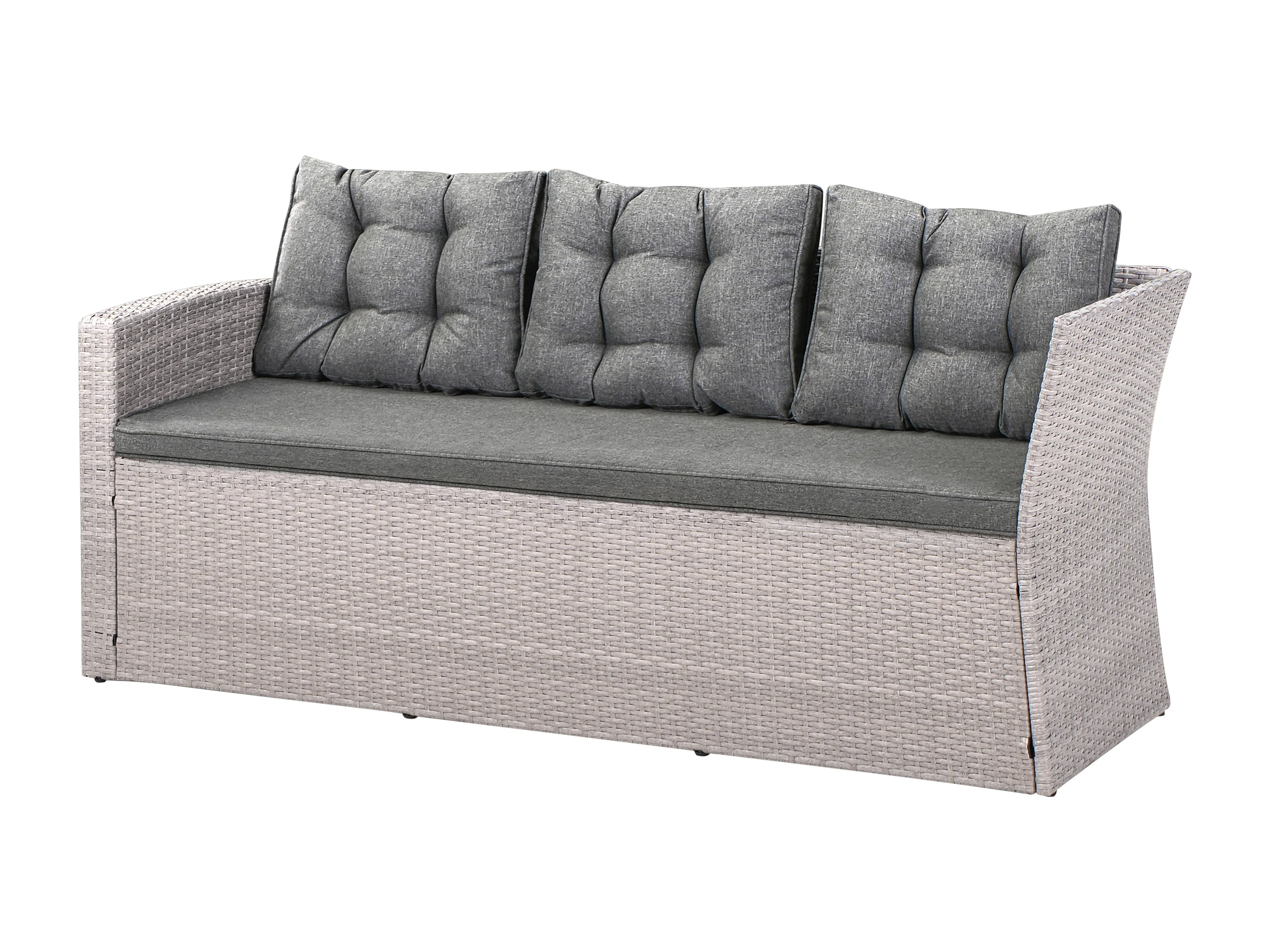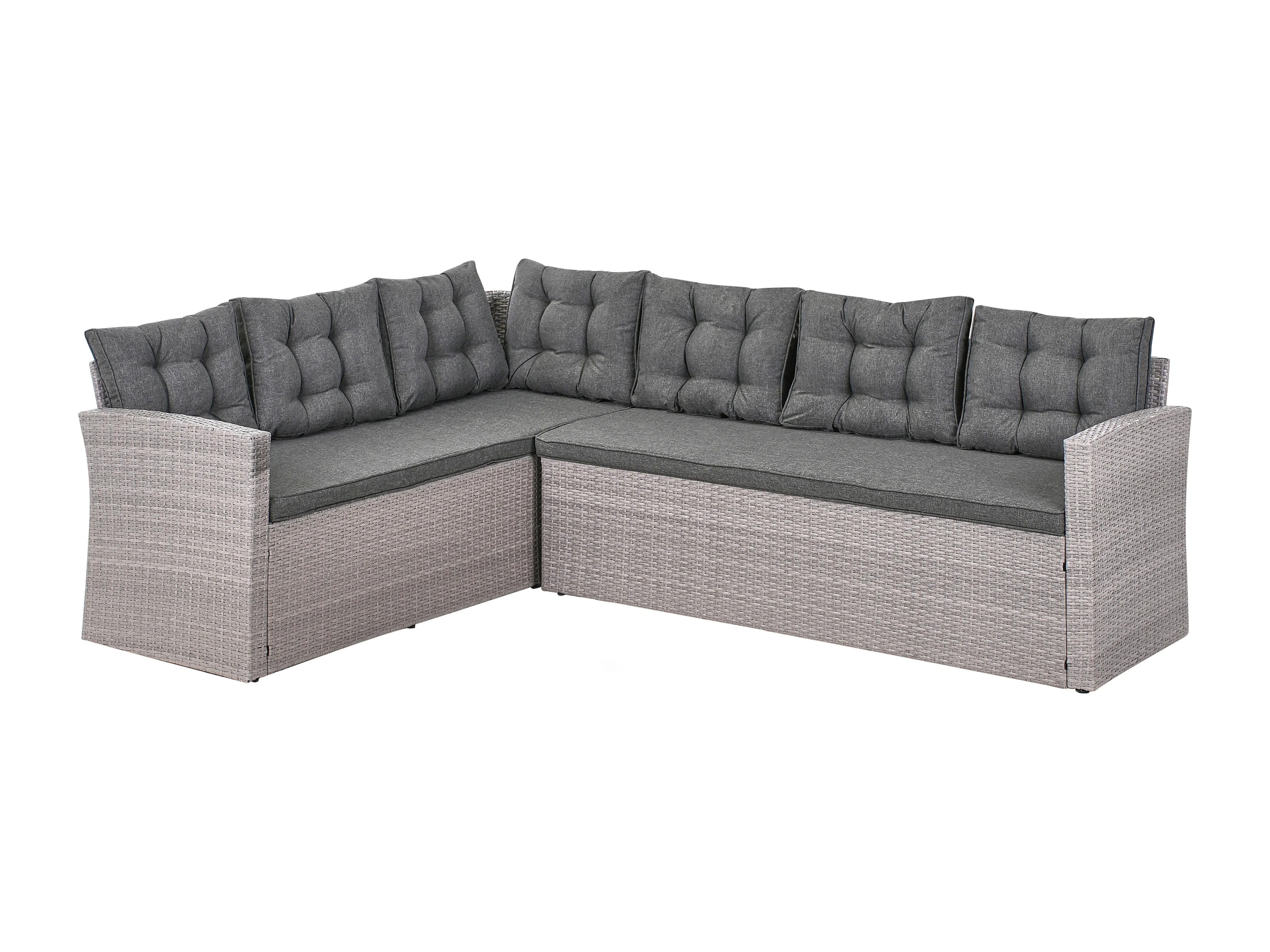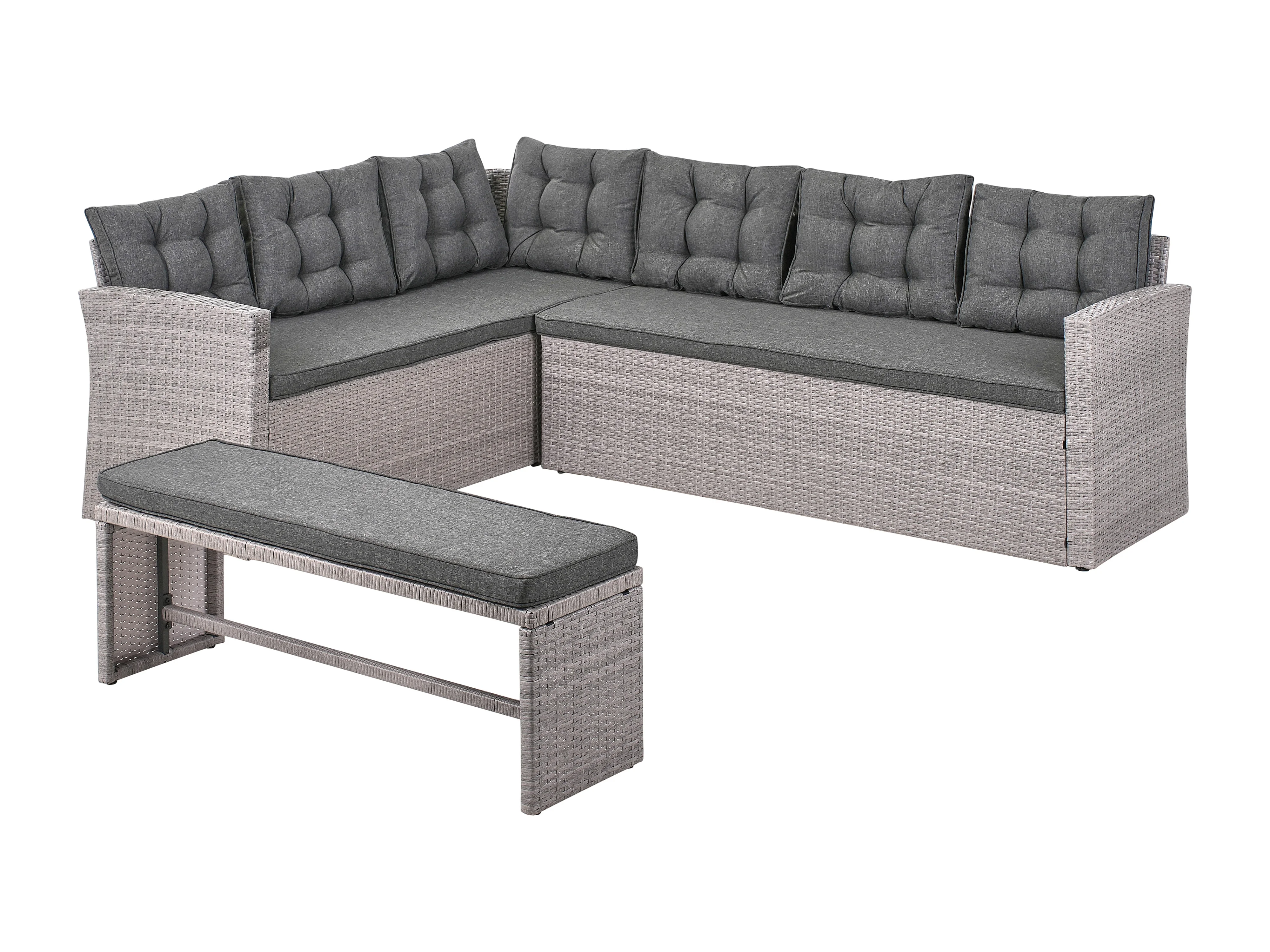 Garten Ecksofa mit Bank Polyrattan hellgrau Auflagen grau 8-Sitzer Viterbro