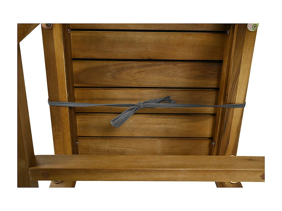 Garten-Esstisch aus Akazienholz: 3-Sitzer Sofa, 2 Sessel und 2 Hocker - Tisch L.150 cm - Natur und Grau