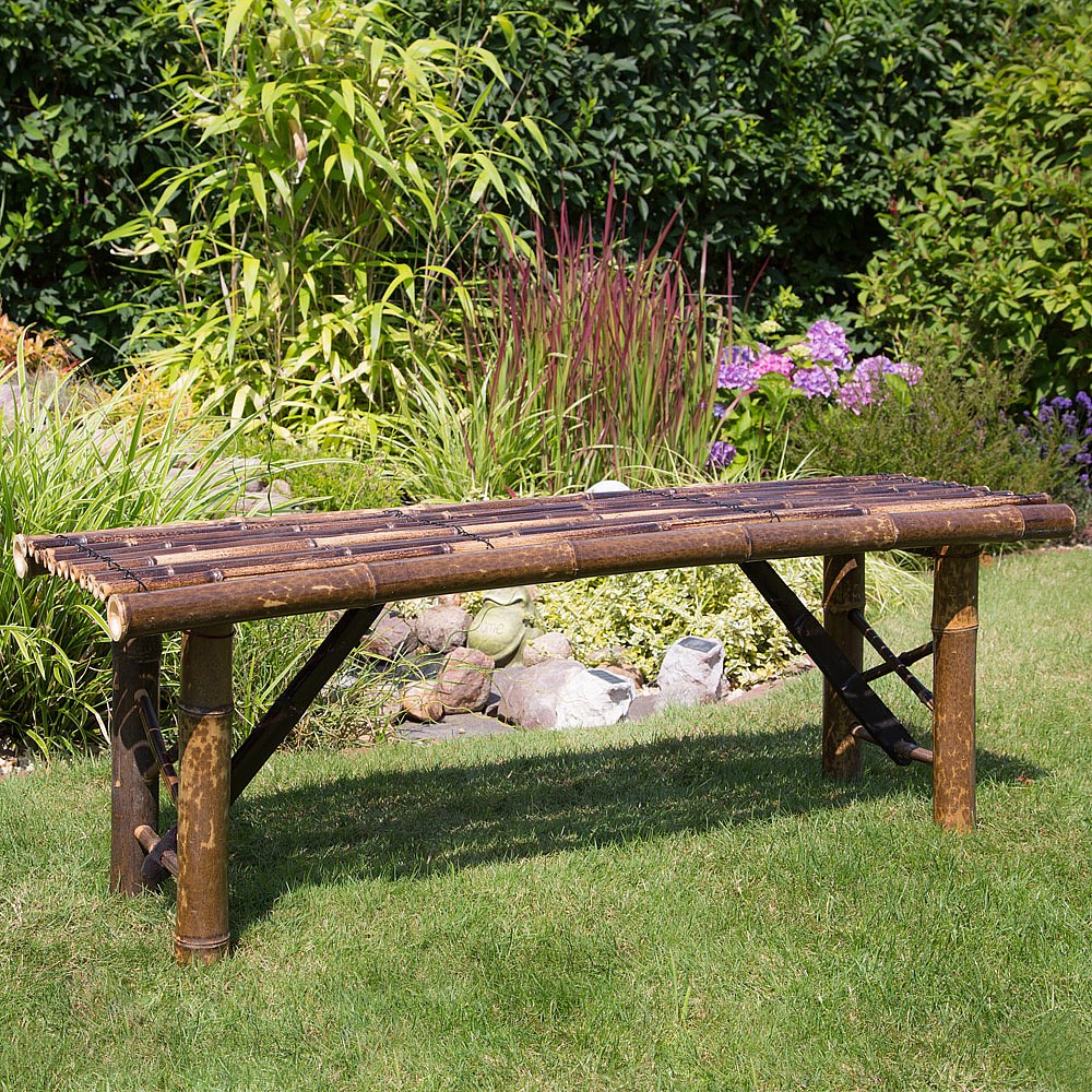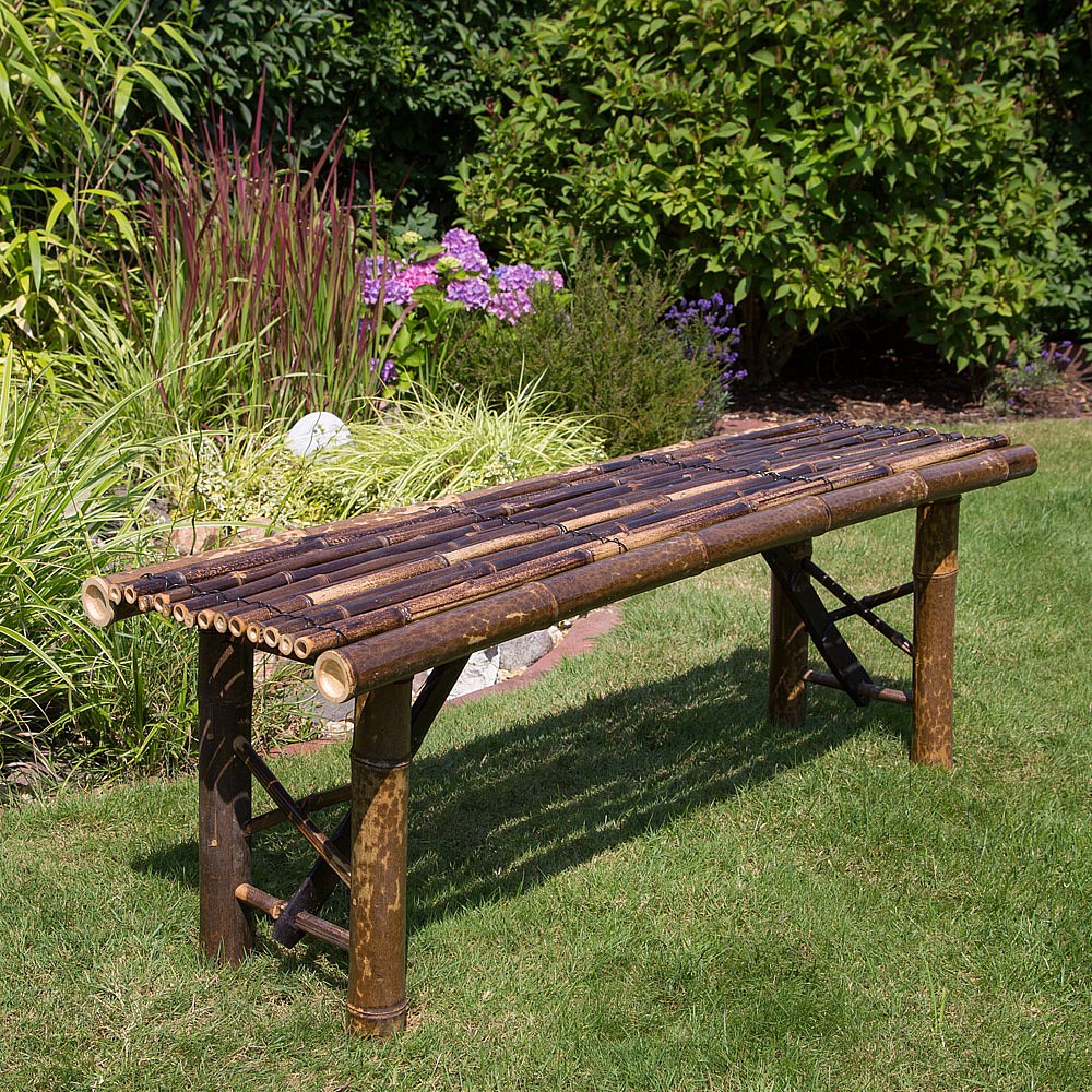 Gartenbank 44x120x36 cm Braun Bambus Sitzgelegenheit Außenbereich Terrasse Natur