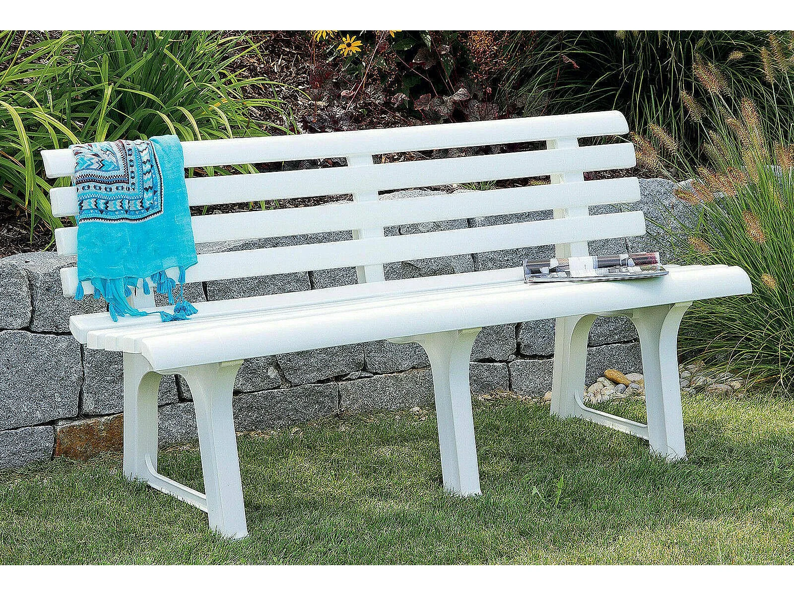 Gartenbank Dluzard, Monoblock-Gartenbank, Außenbank, 100 % Made in Italy,145x49h74 cm, Weiß