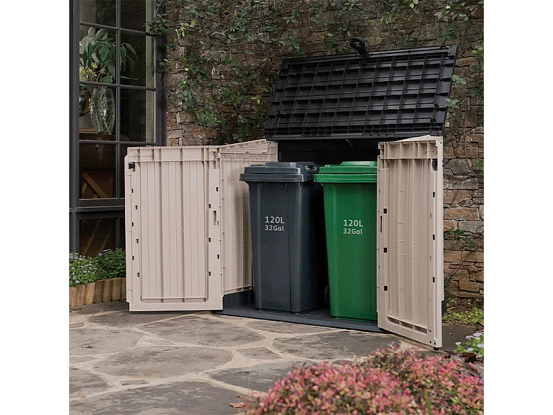 Gartenbox aus Harz "Caracas" 880L - Doppelöffnung - Beige
