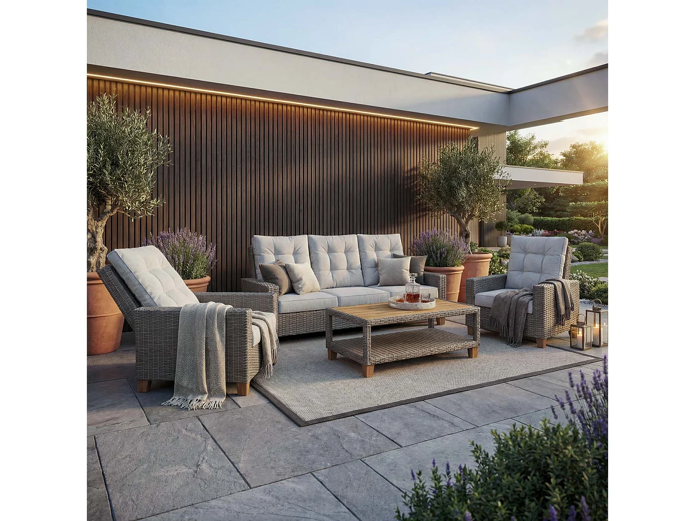 Gartengarnitur MCW-G28 Rattan (4-teilig), Grau, Kissen hellgrau