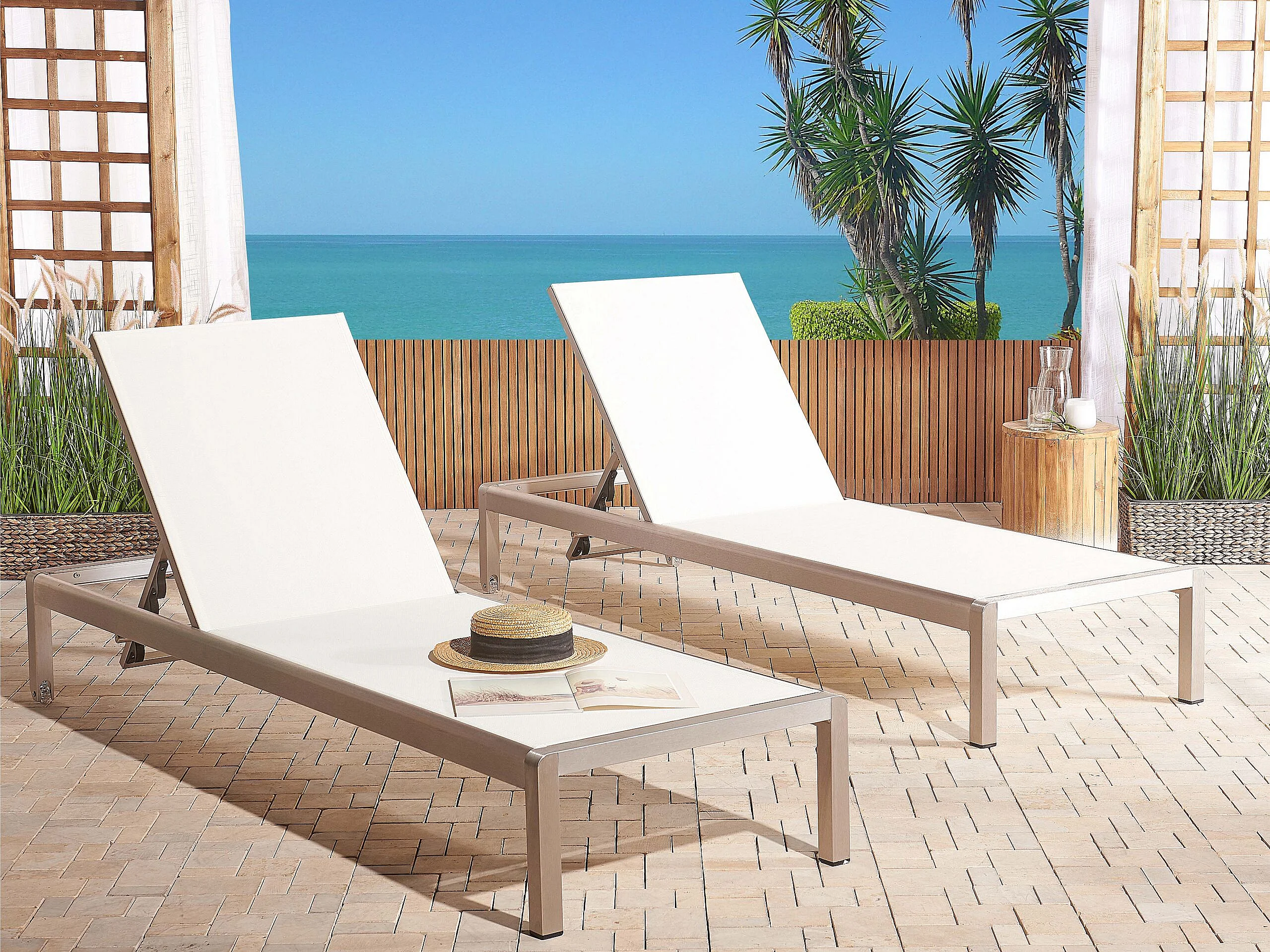 Moderne Gartenliege verstellbare Rückenlehne Textilbespannung /Aluminium weiß Fossato