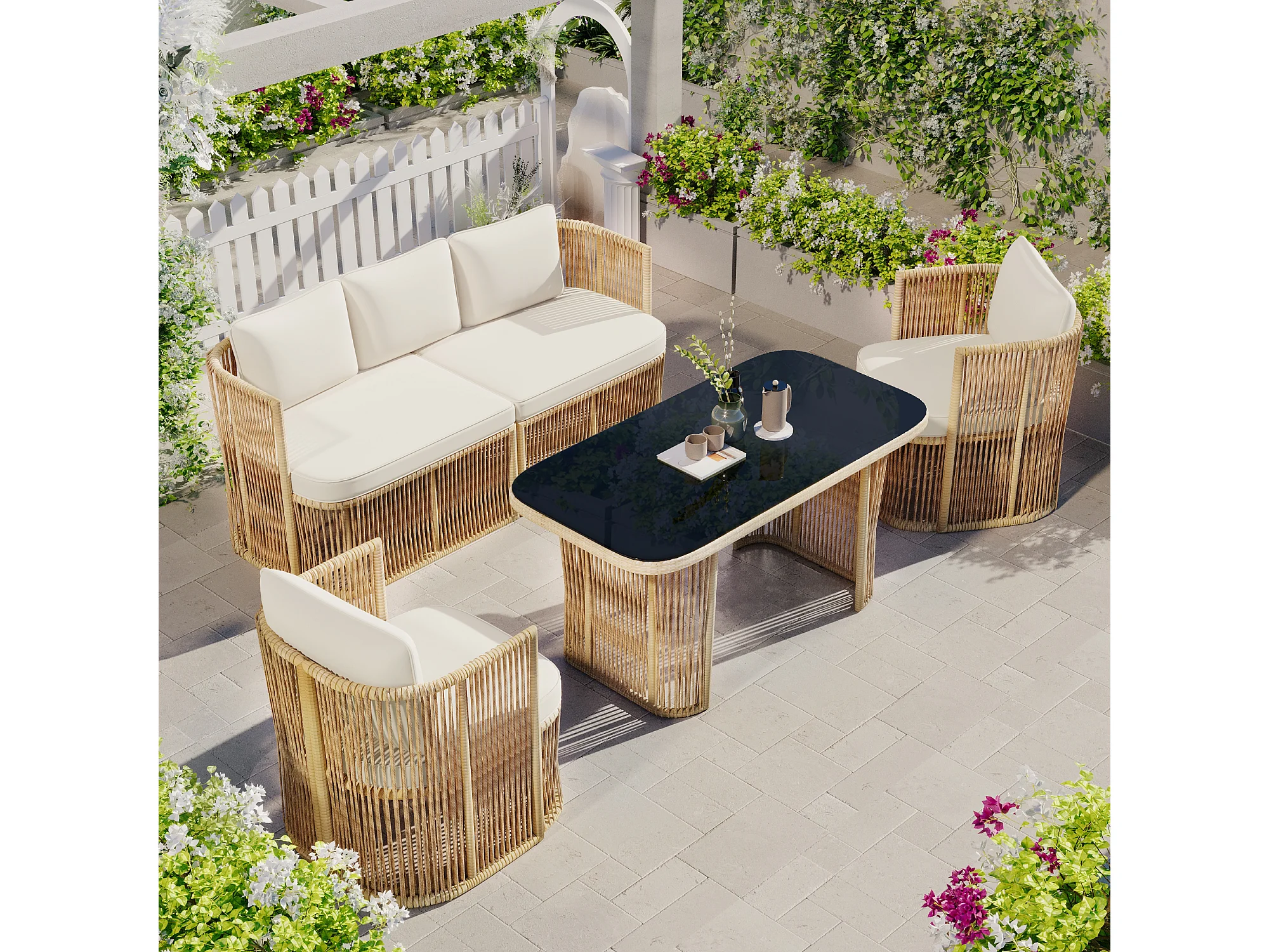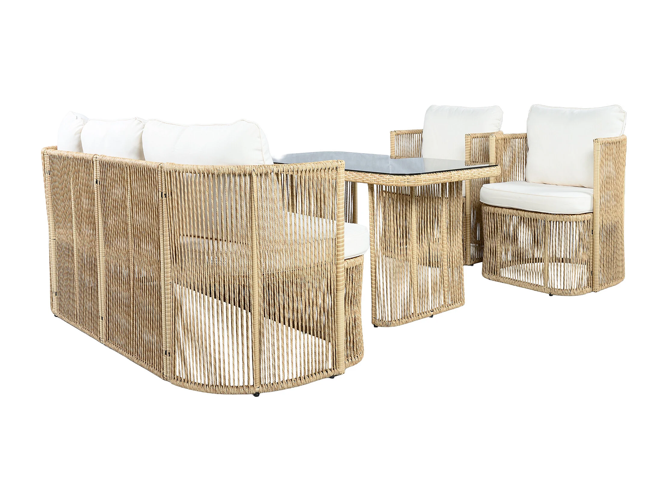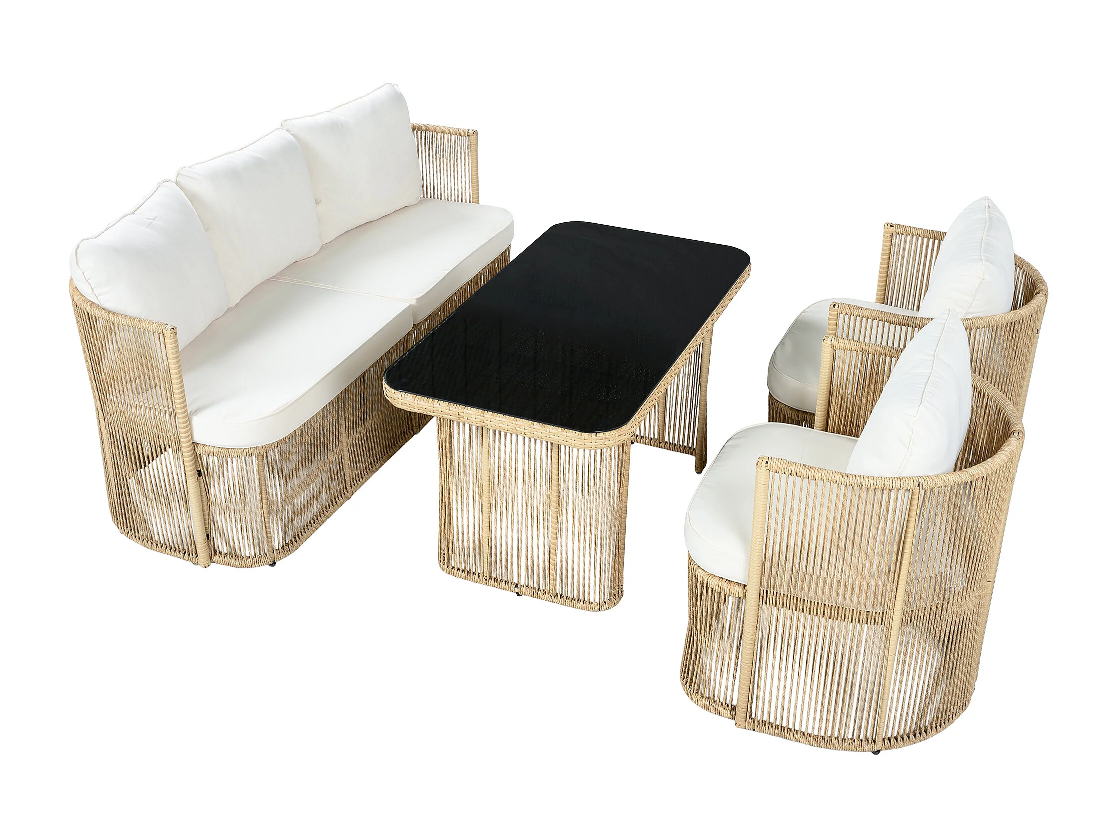 Gartenmöbel-Set aus Rattan 5-teilig - inklusive eines 3-Personen-Sofas - zwei Sessel und einen Glastisch - Natur