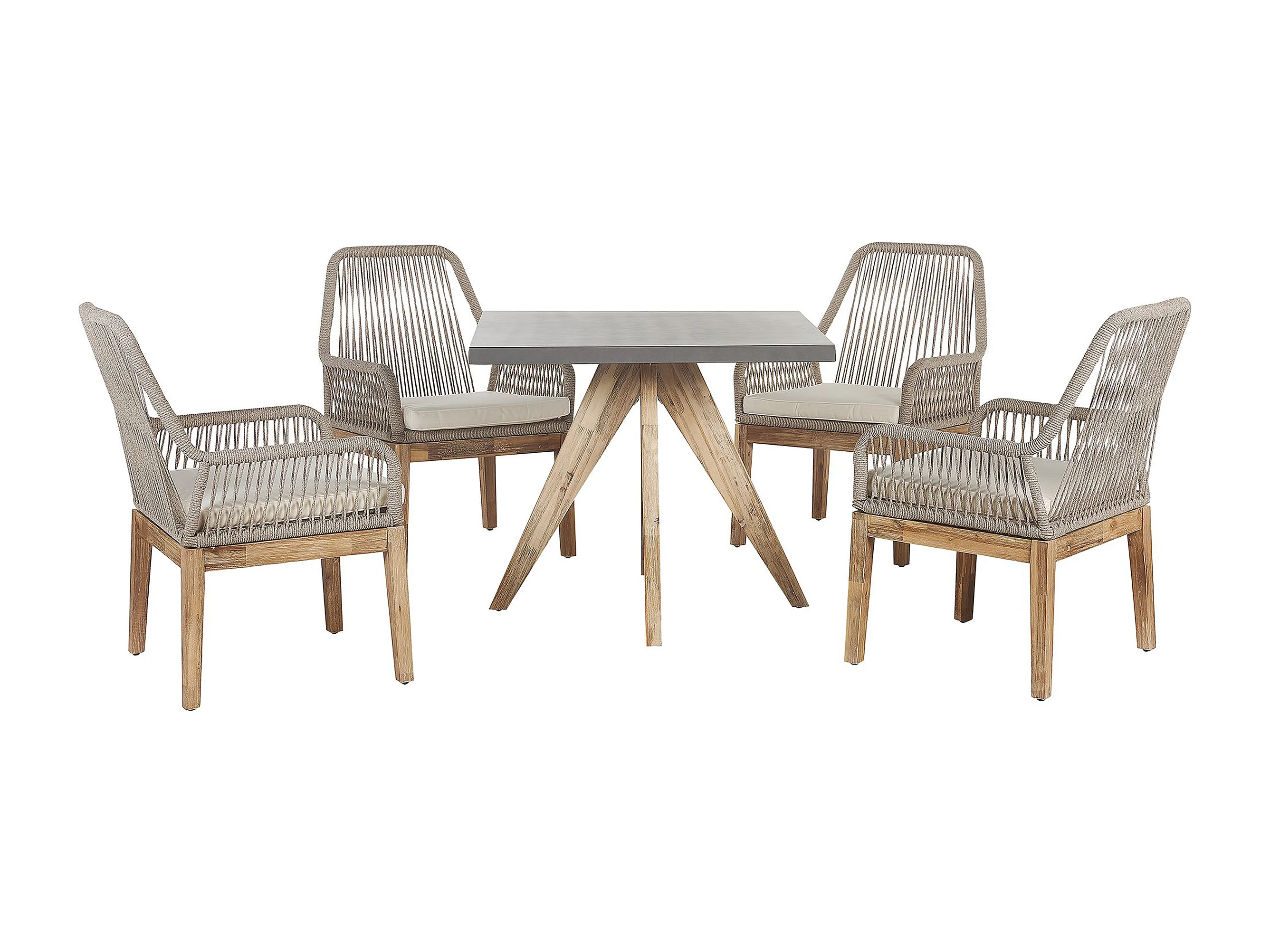 Gartenset Tisch Faserzement in Grau 90x90 cm 4 Stühle beige Akazienholz Olbia