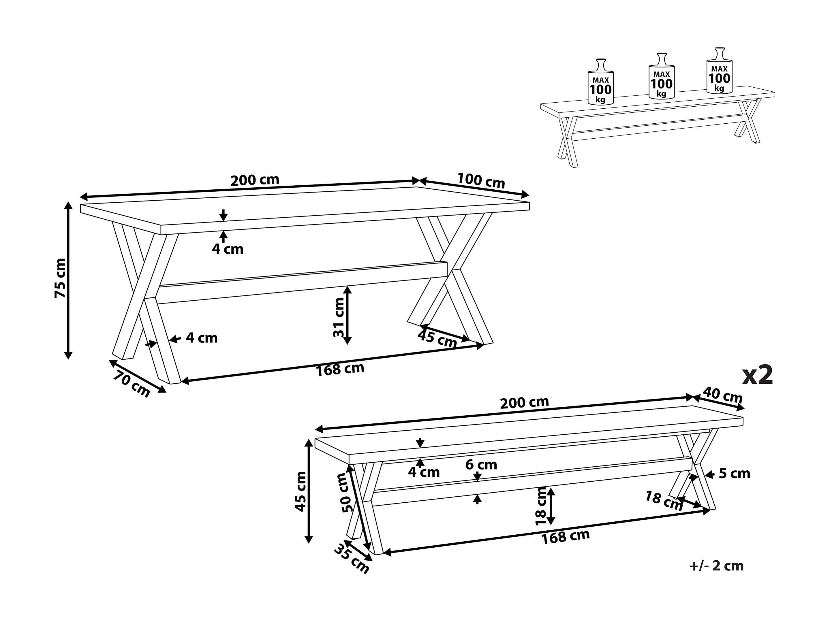 Modernes Gartenset mit Tisch und 2 robusten Bänken aus Faserzement weiß Olbia