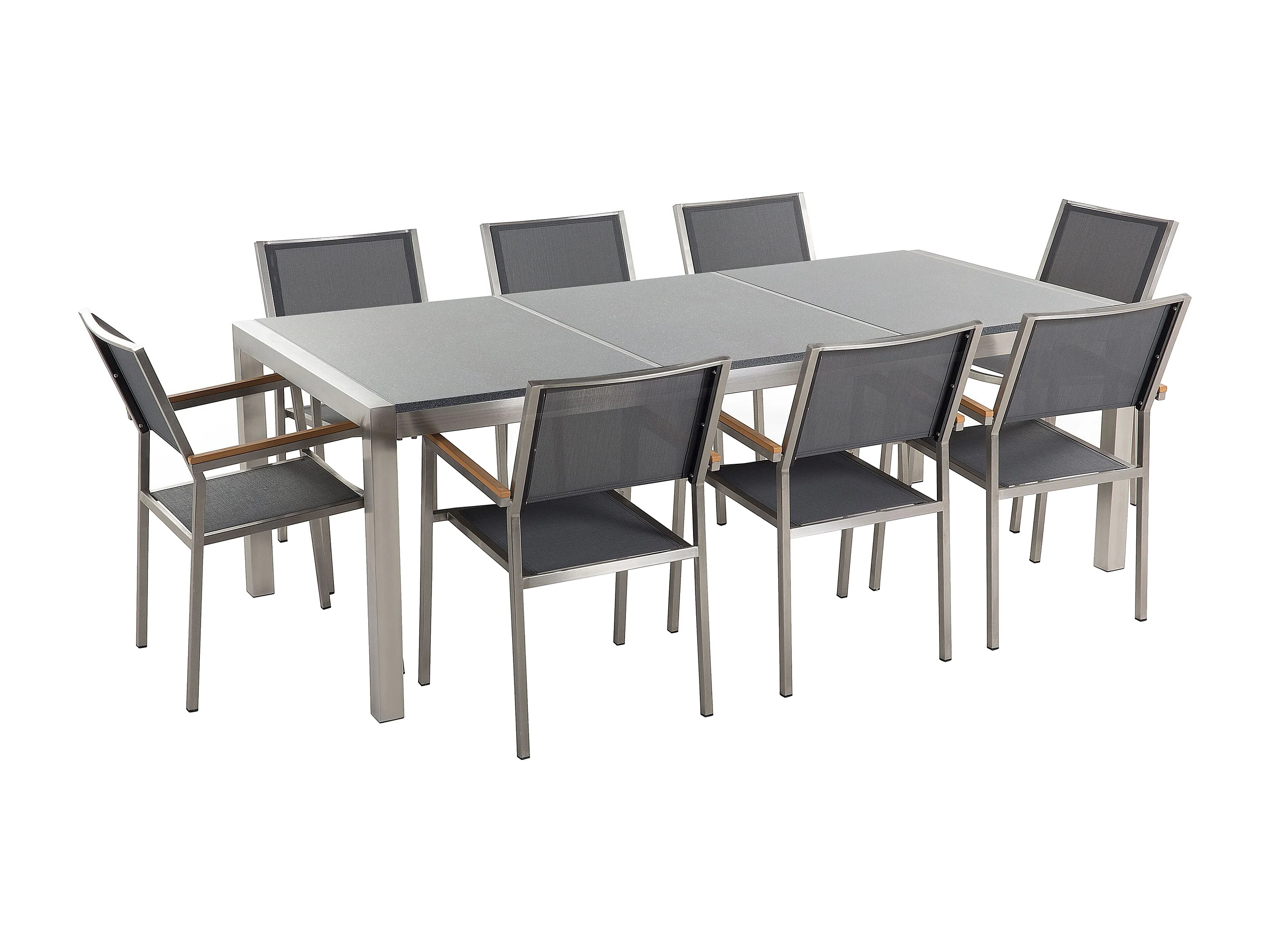 Gartenmöbel Set 8-Sitzer GROSSETO Dreifachplatte Granit Polierter Grau