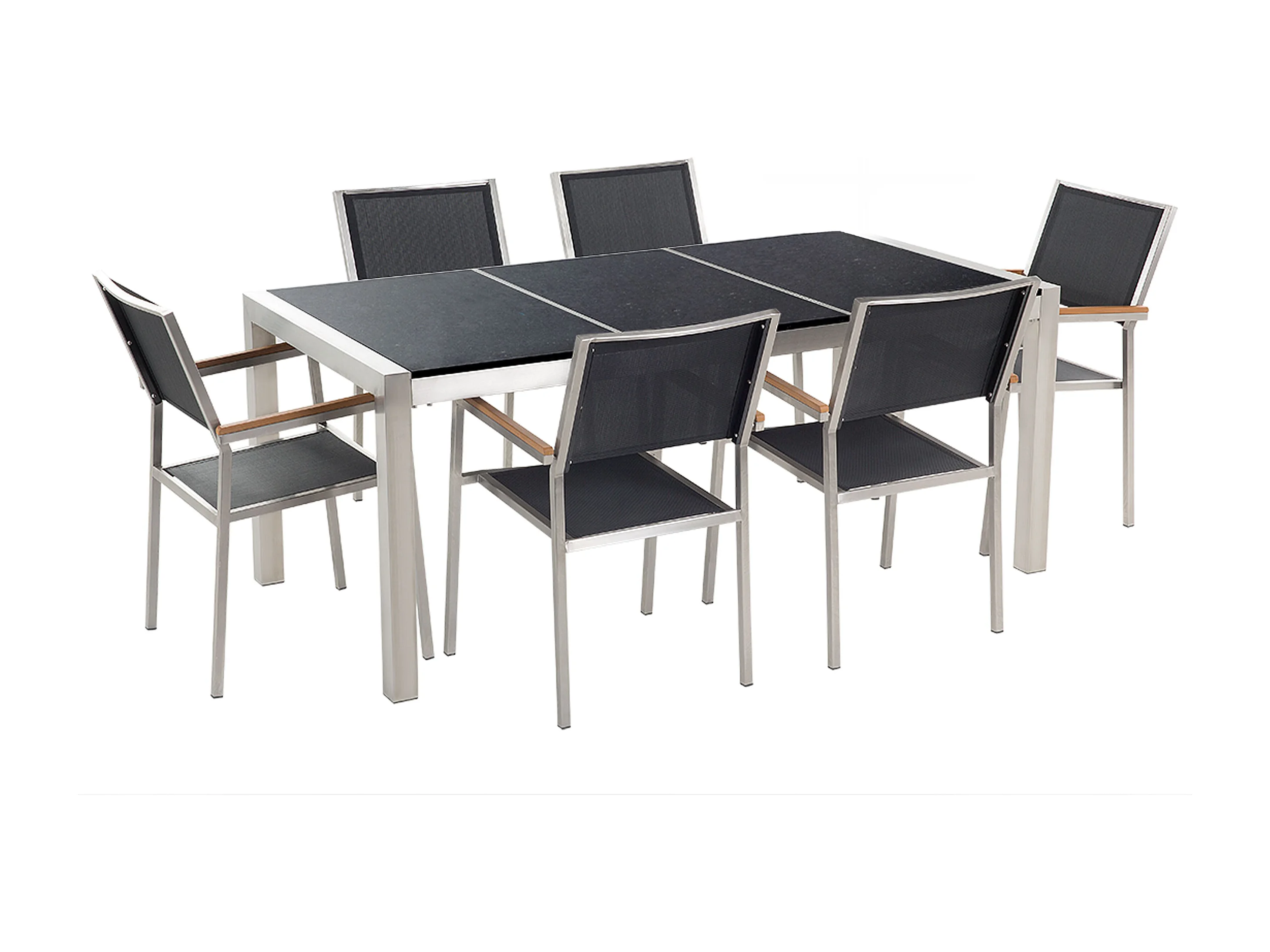 Gartenmöbel Set Tisch 180 cm mit 3 Platten in Schwarz 6 Stühle in Schwarz