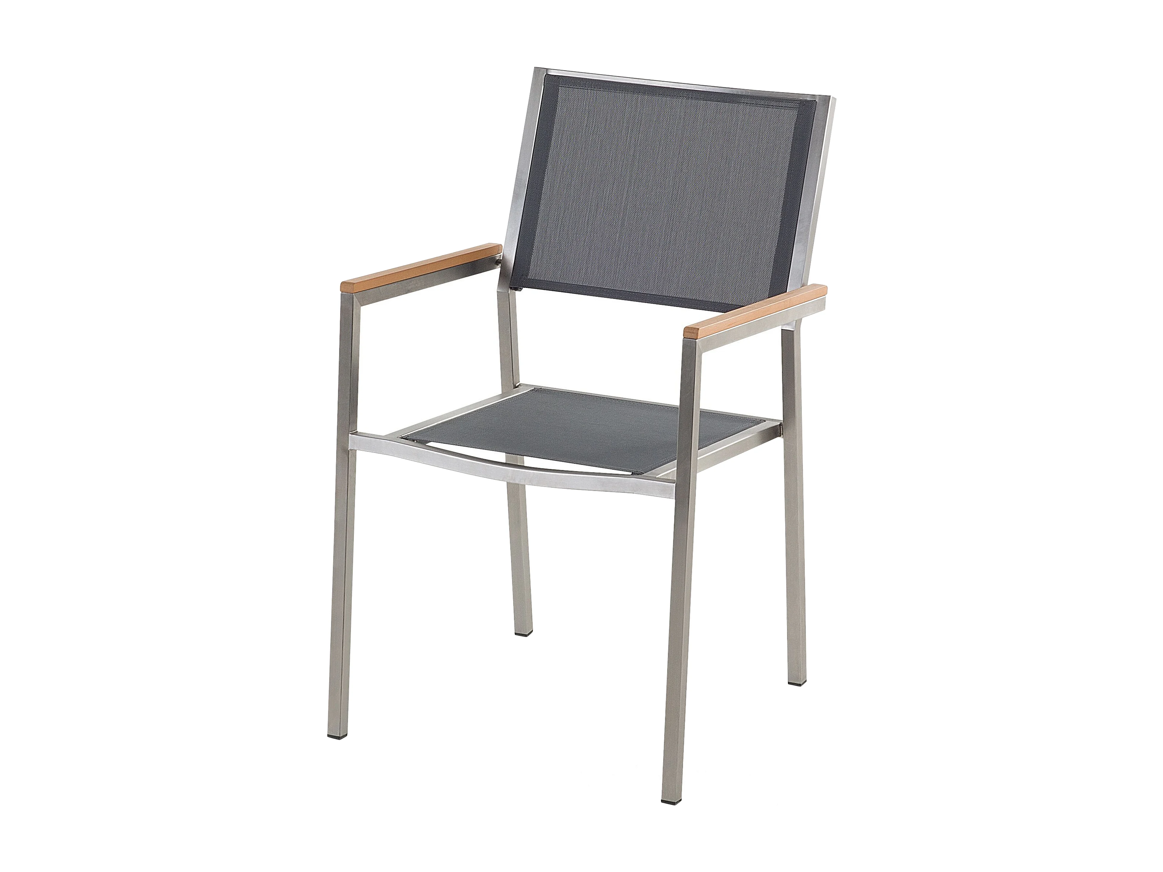 Gartenmöbel Set Tisch 220 cm mit 3 Platten in Schwarz 6 Stühle in Grau Grosseto