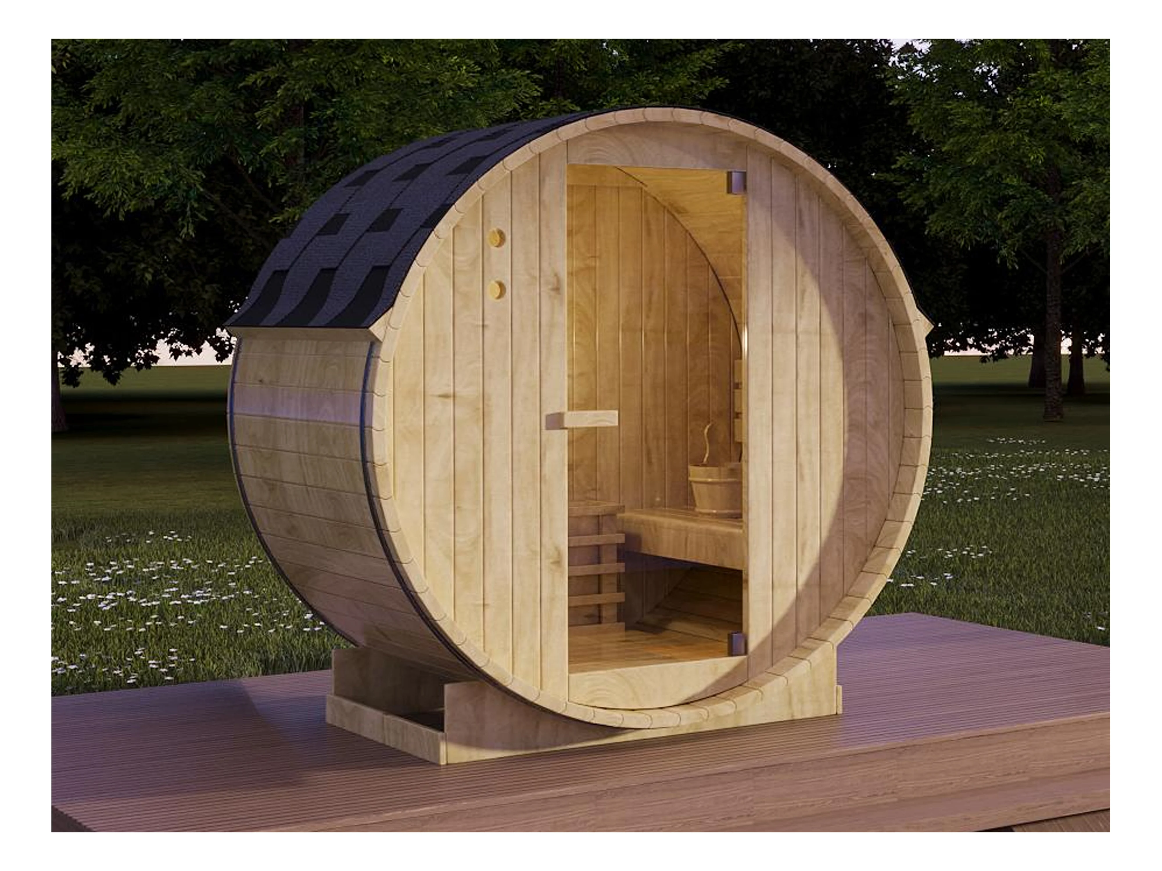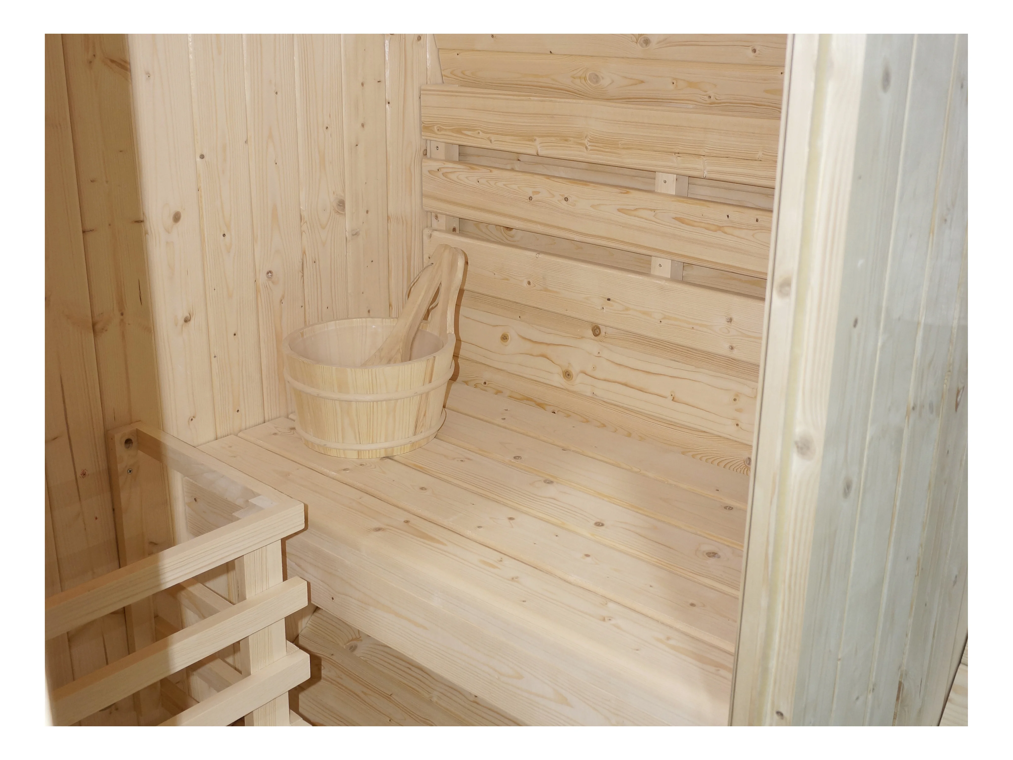 Inklusive Beleuchtung, Thermo-Hygrometer, Eimer, Schöpfkelle, Sanduhr