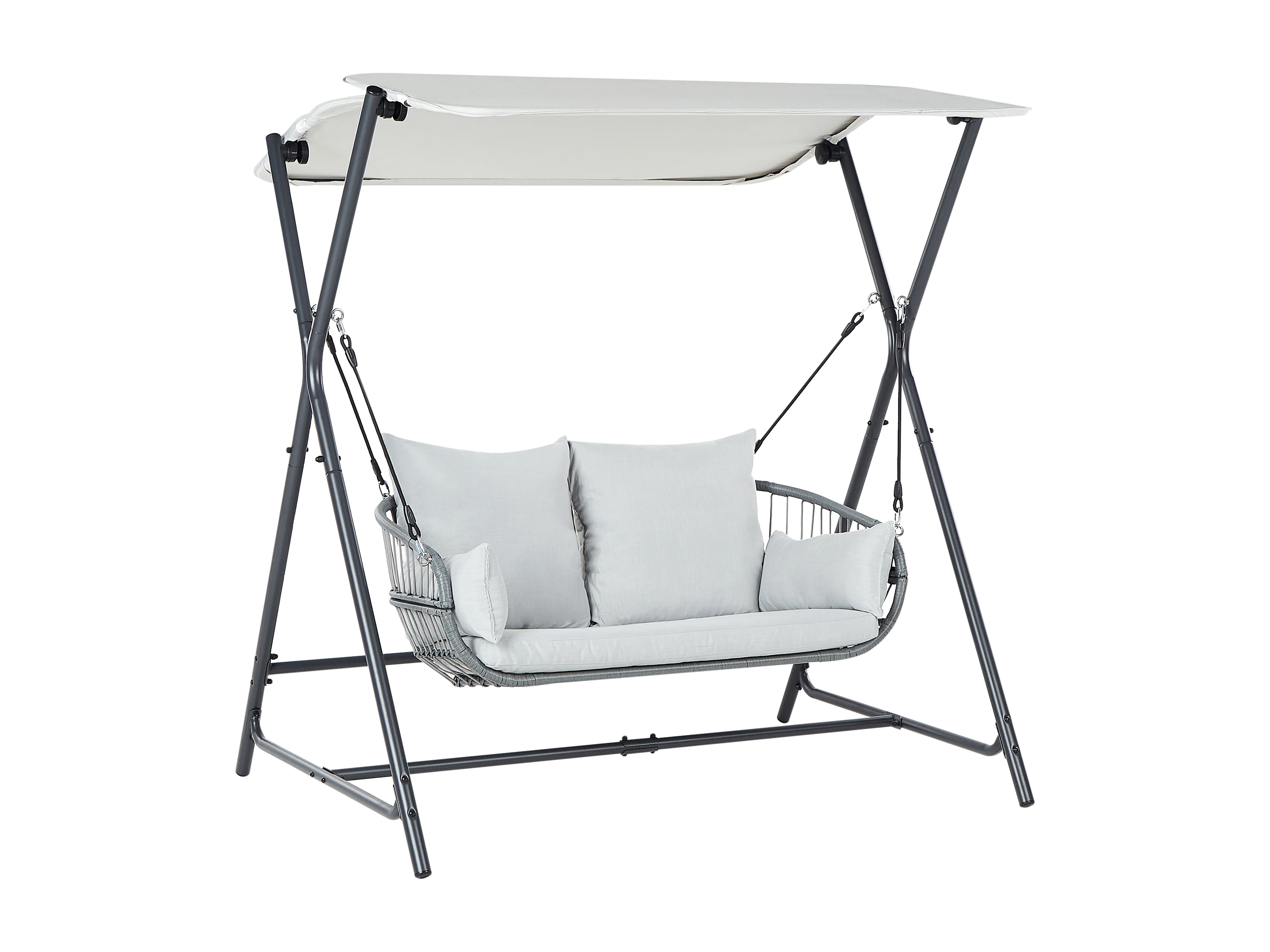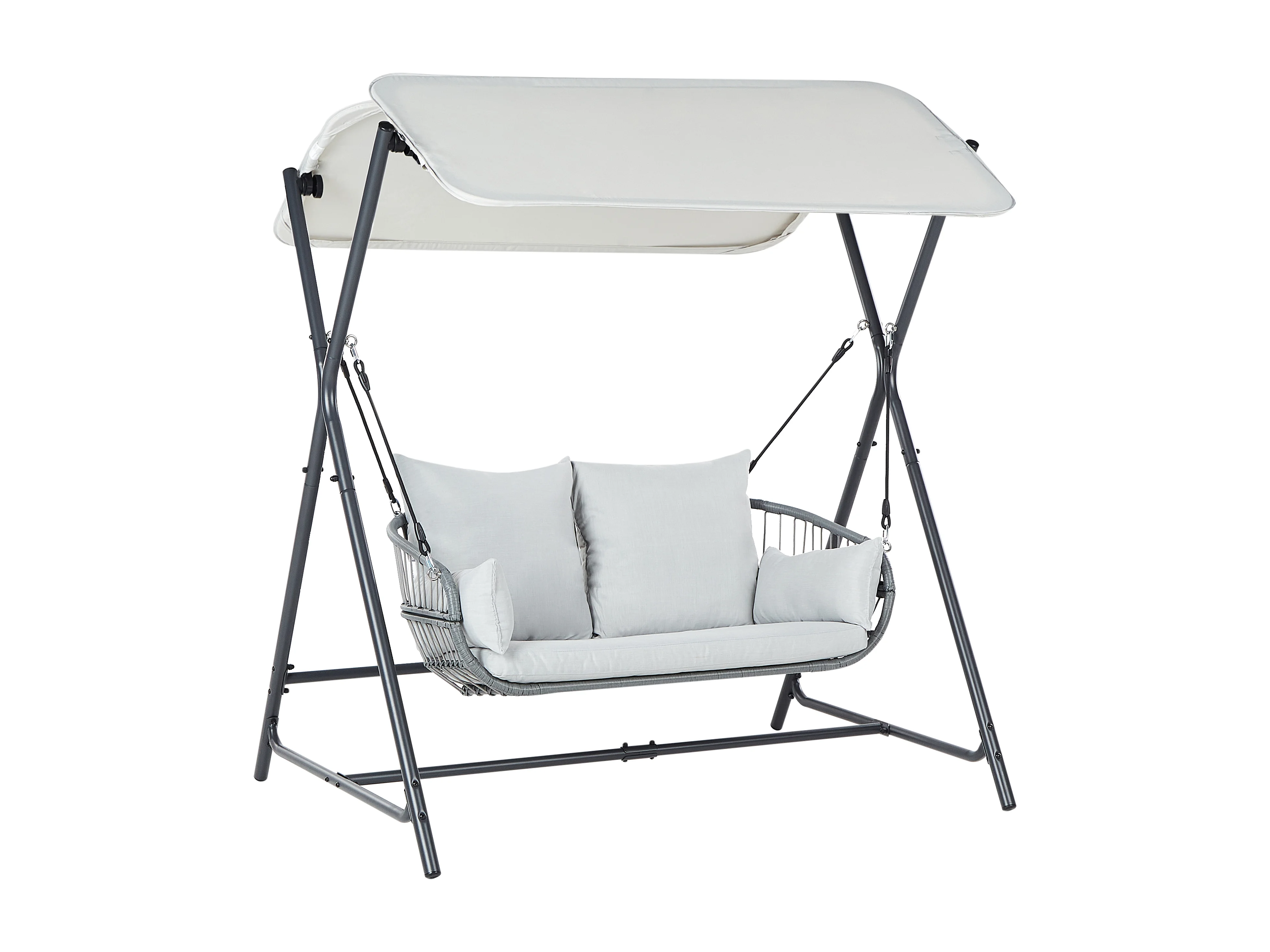 Gartenschaukel aus Stoff Stahl helles Grau mit verstellbarem Dach modern Fiastra