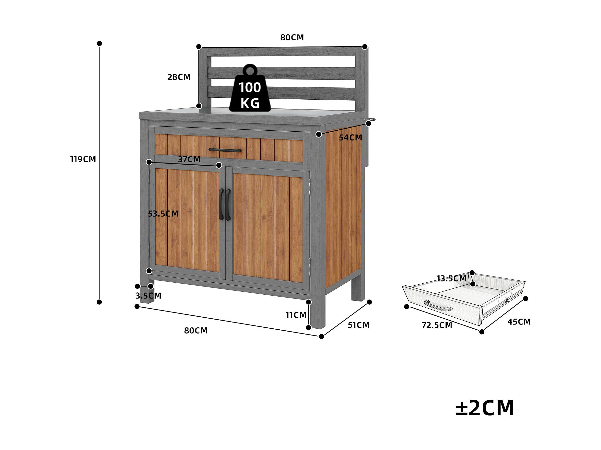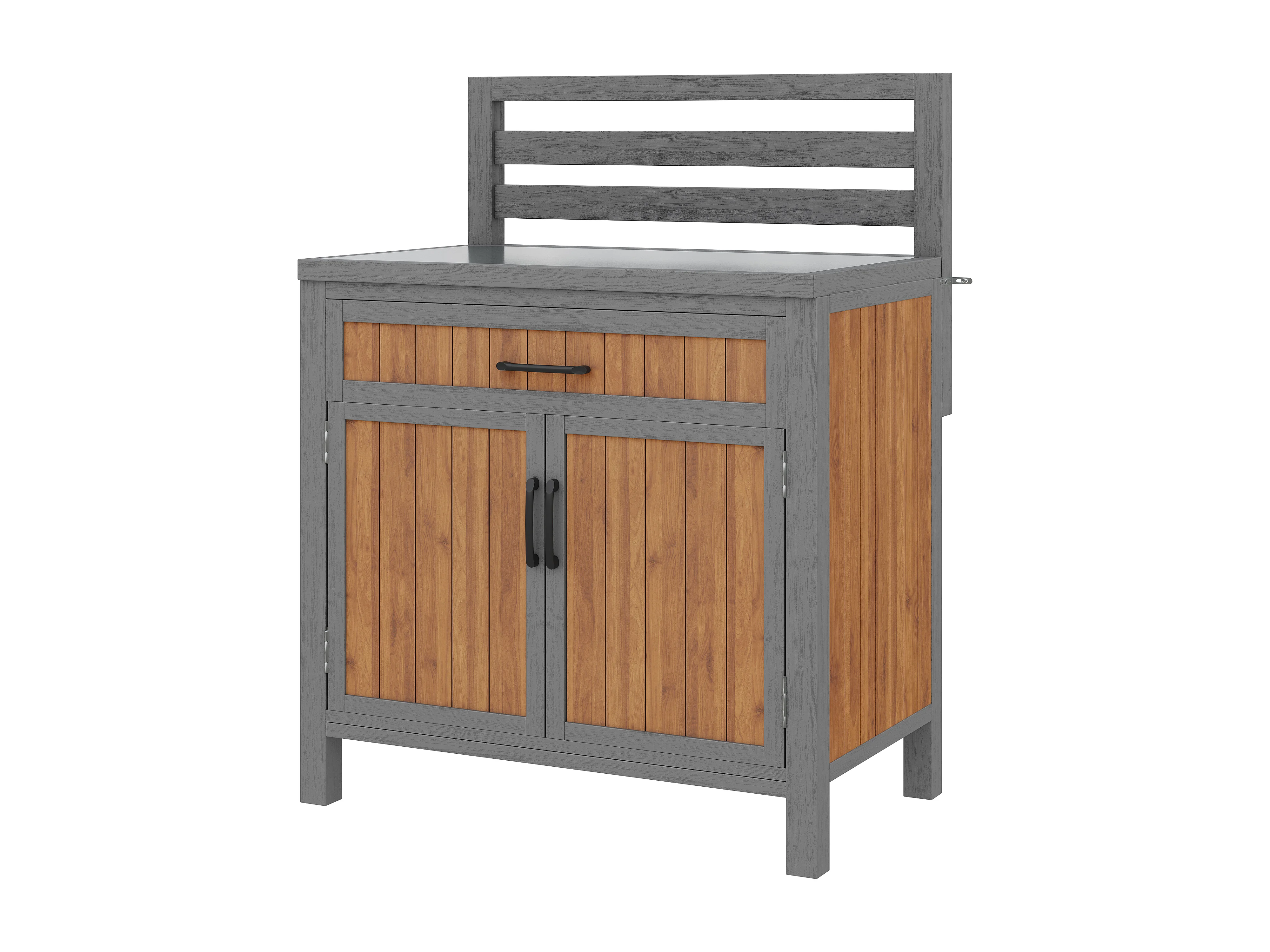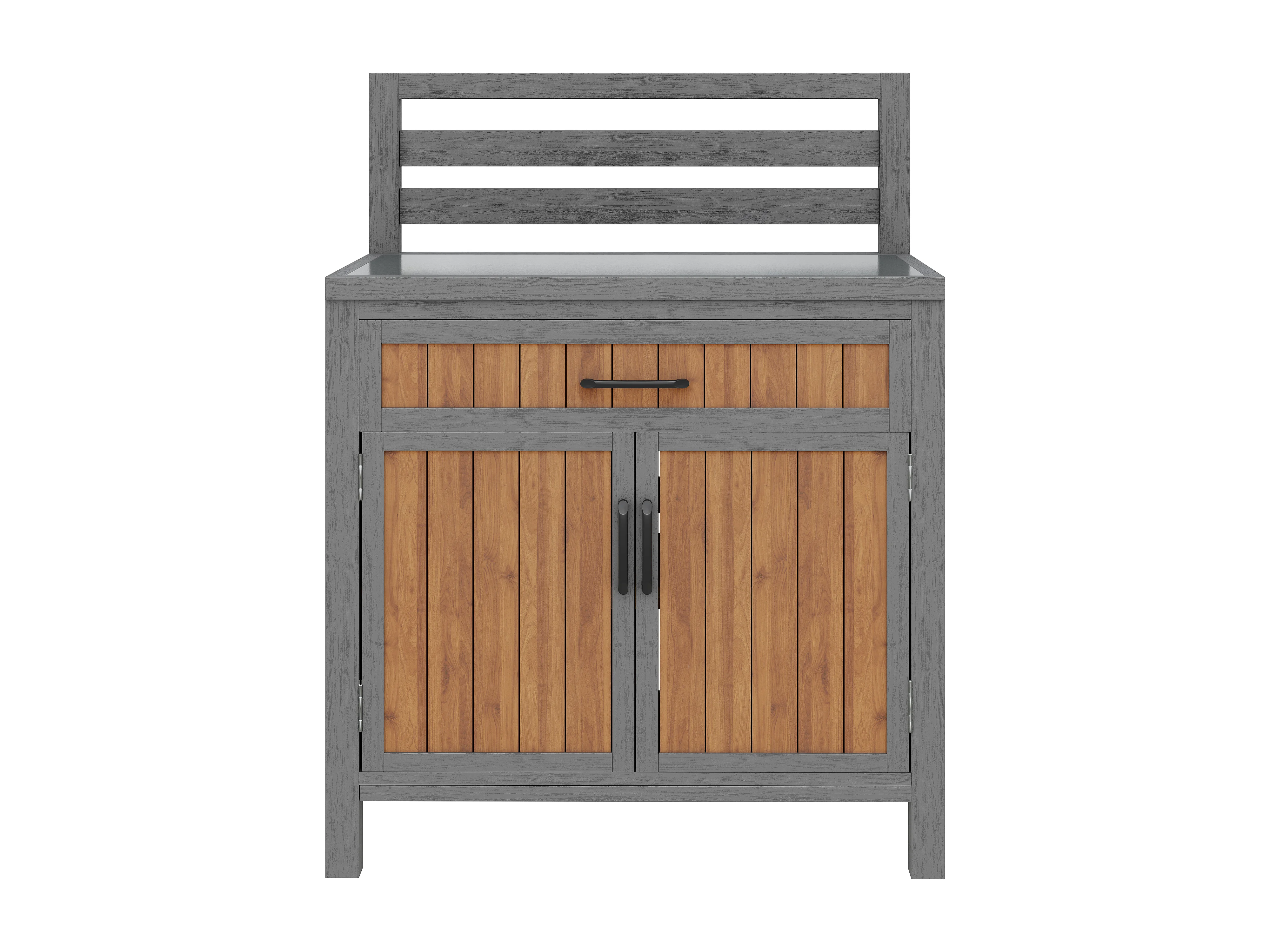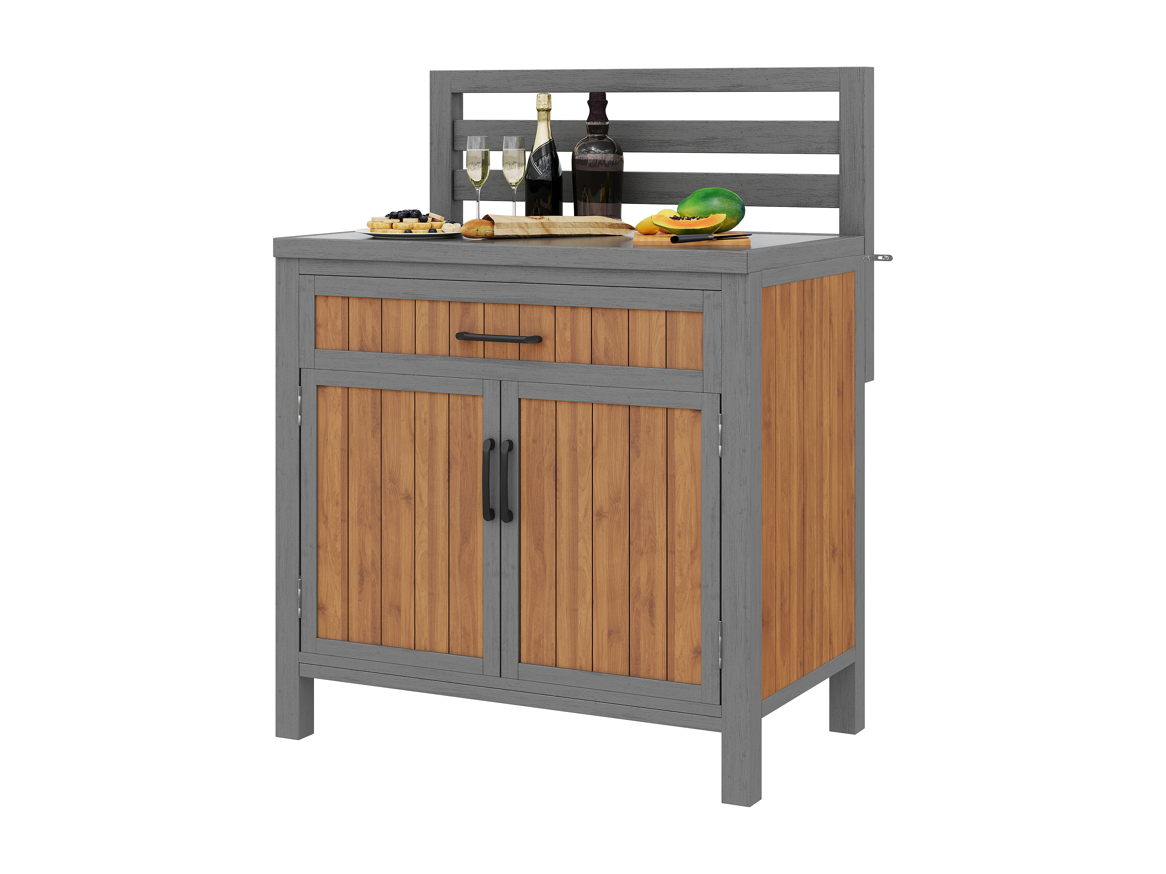 Gartenschrank aus Massivkiefer mit Arbeitsplatte und Schublade - Außen-Aufbewahrungsschrank, Grillstation - 80x51x119cm - Grau