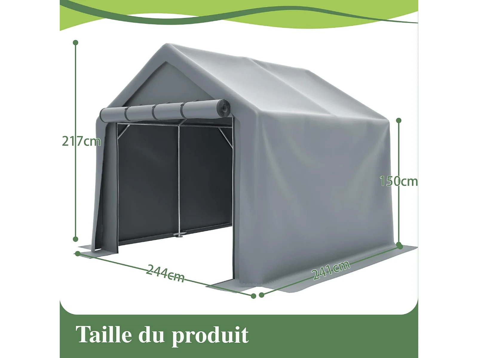 Gartenschutz - verzinkter Stahlmetallrahmen und PE -Stoff - Garage - 244x241x217cm - Grau