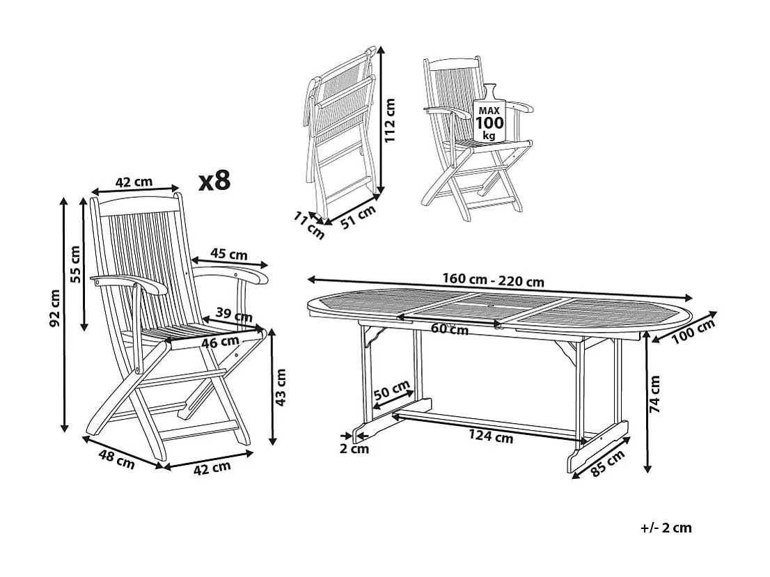Gartenset Akazienholz heller Holzfarbton 8 Stühle Ausziehtisch oval Maui II