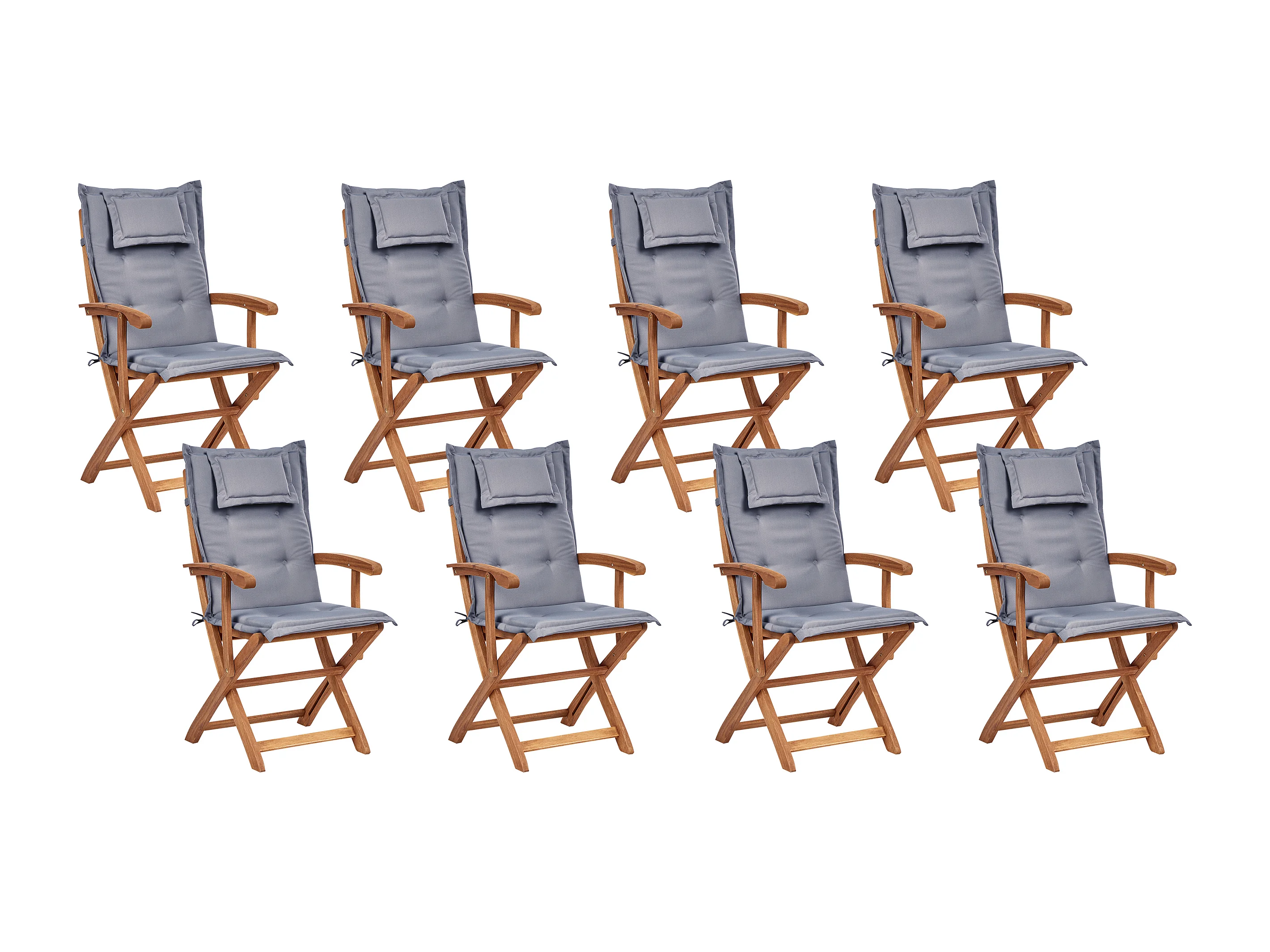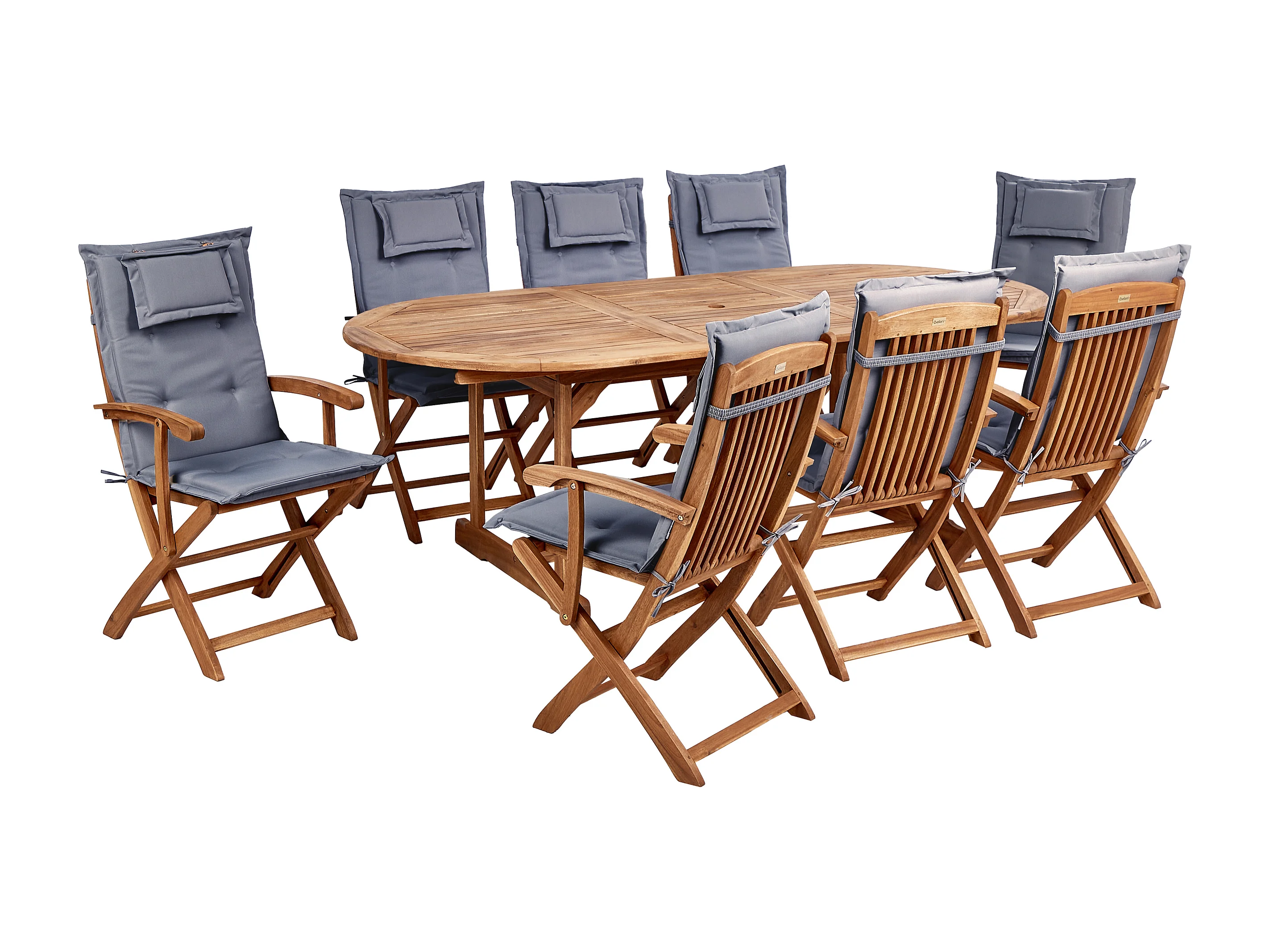 Gartenset Akazienholz heller Holzfarbton 8 Stühle Tisch Auflagen grau Maui II