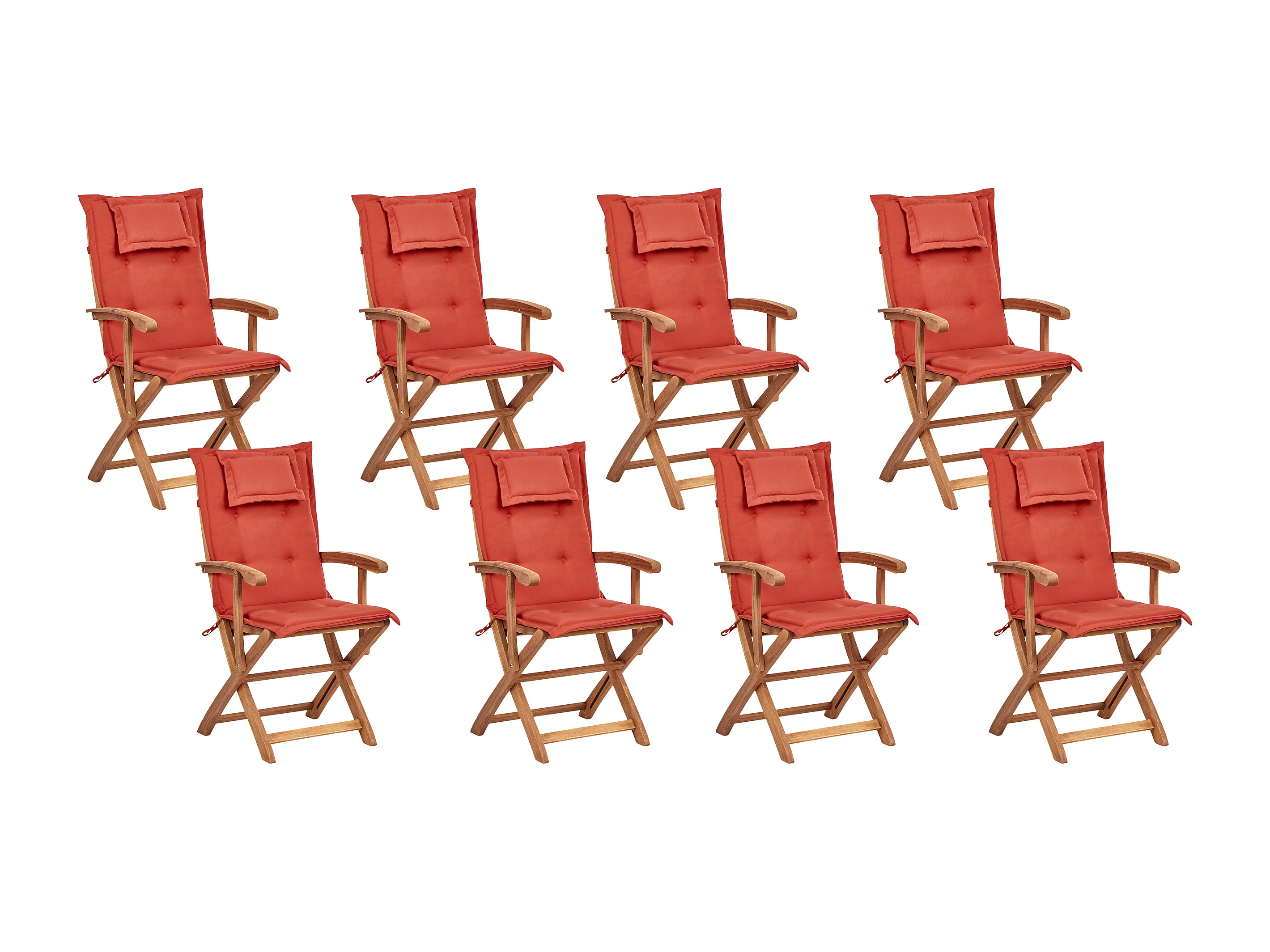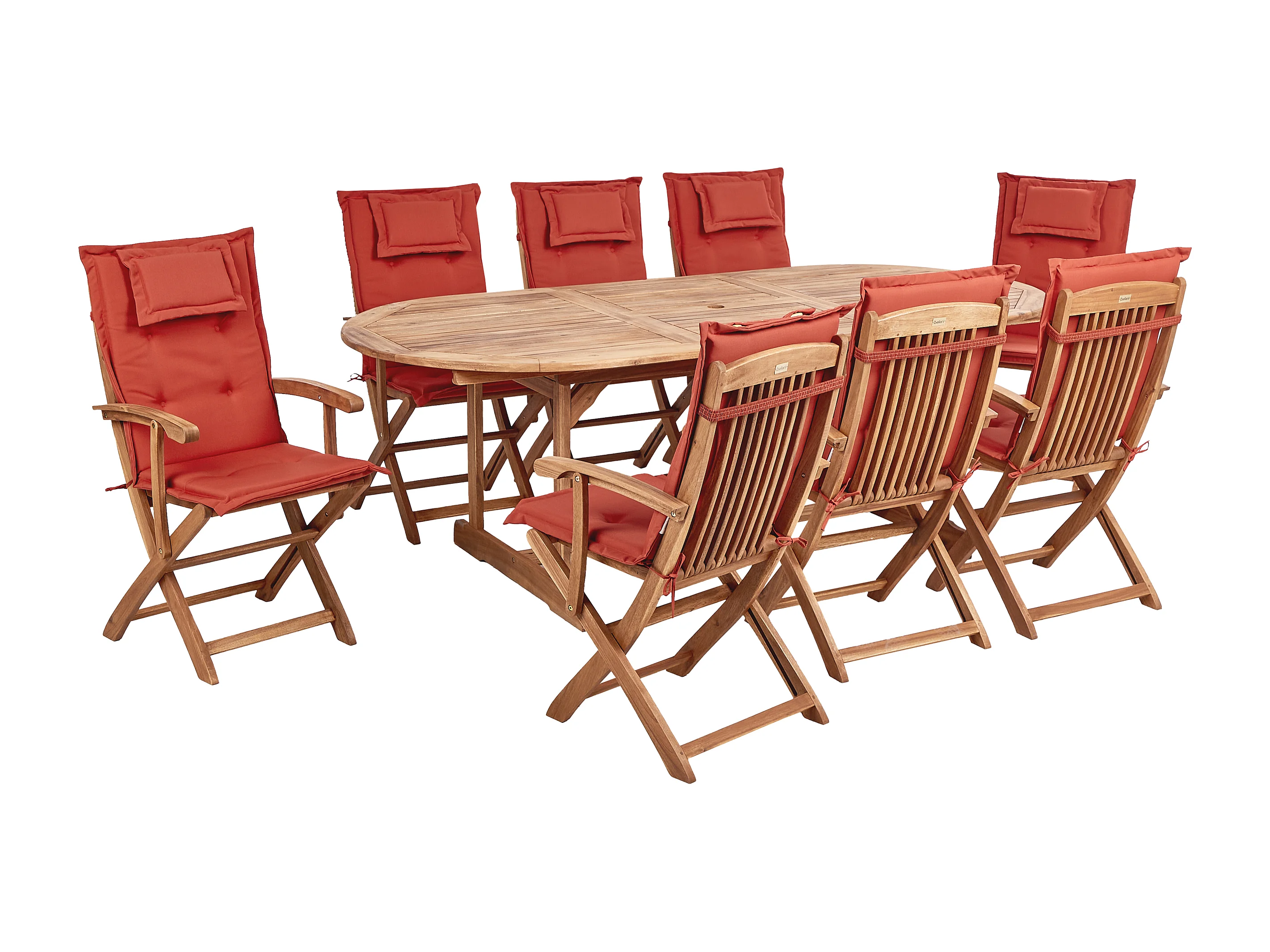 Gartenset Akazienholz heller Holzfarbton 8 Stühle Tisch Auflagen rot Maui II