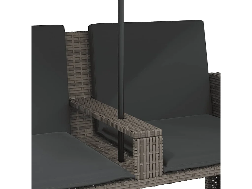Gartensofa 2-Sitzer Verstellbar mit Tisch Grau Poly Rattan