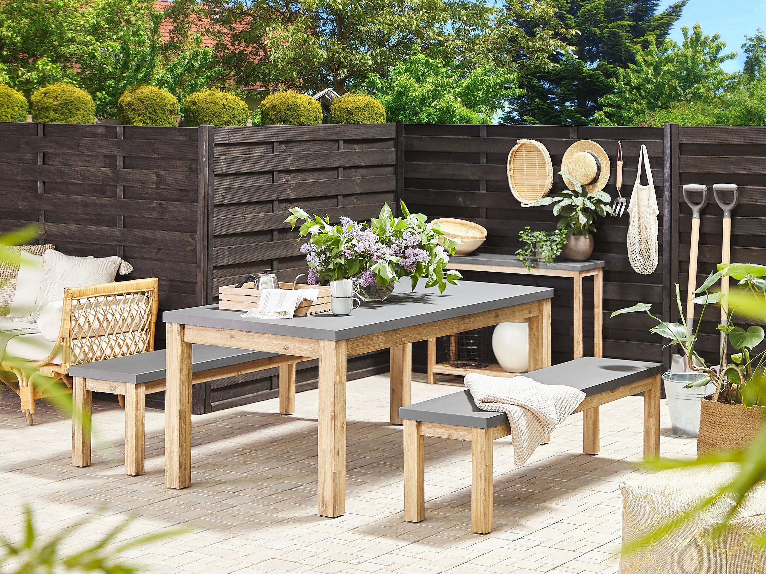 Trendy Tisch Faserzement Akazienholz grau / heller Holzfarbton 180x90 cm Ostuni
