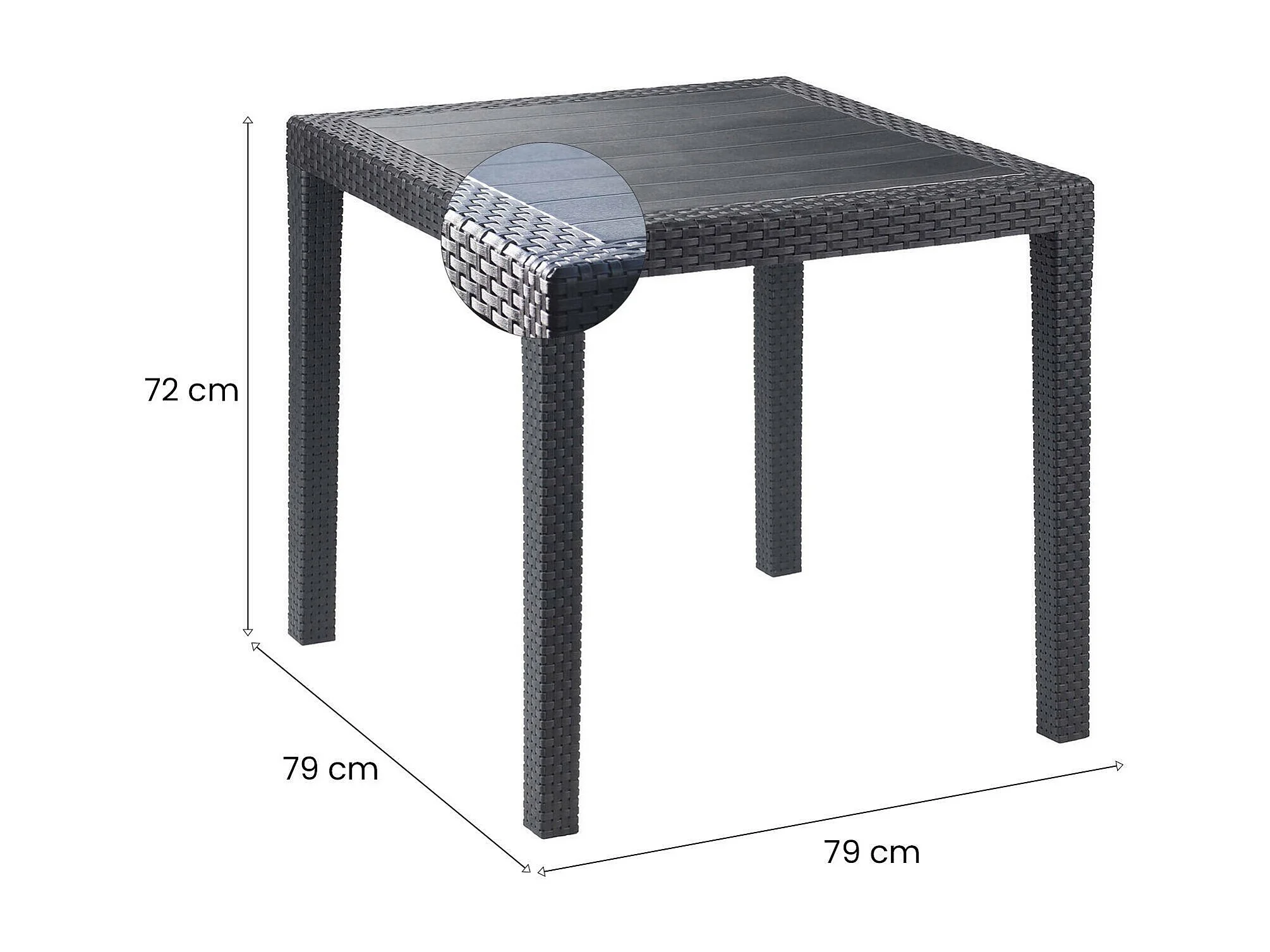 Gartentisch Daanan, Quadratischer Gartentisch, feststehender Couchtisch in Rattan-Optik, 100 % Made in Italy, 80x80h72 cm, Anthrazit