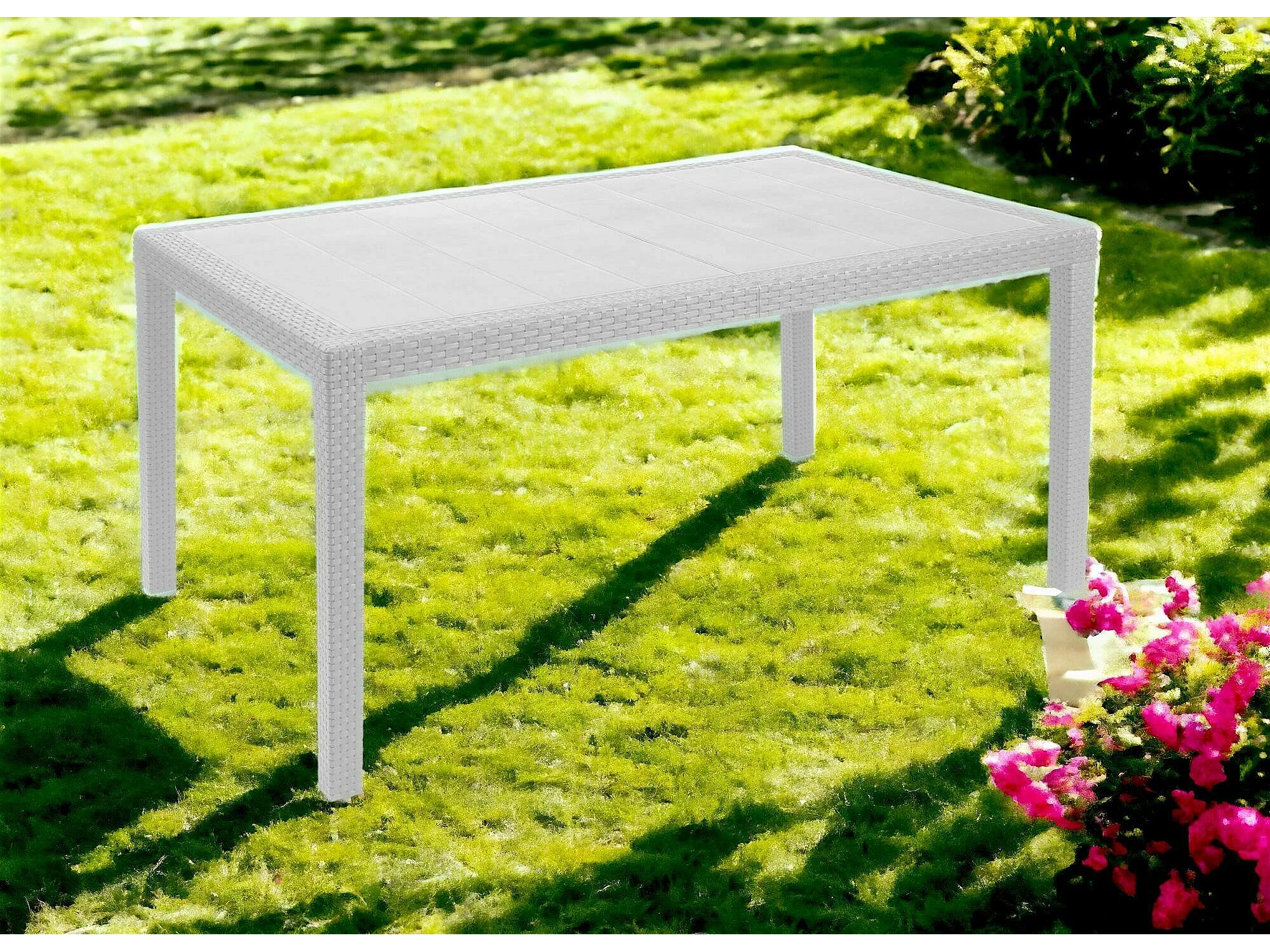 Gartentisch Dfelic, Feststehender rechteckiger Tisch, Mehrzweck-Gartentisch mit Rattan-Effekt, 100 % Made in Italy, 138x78h72 cm, Weiß