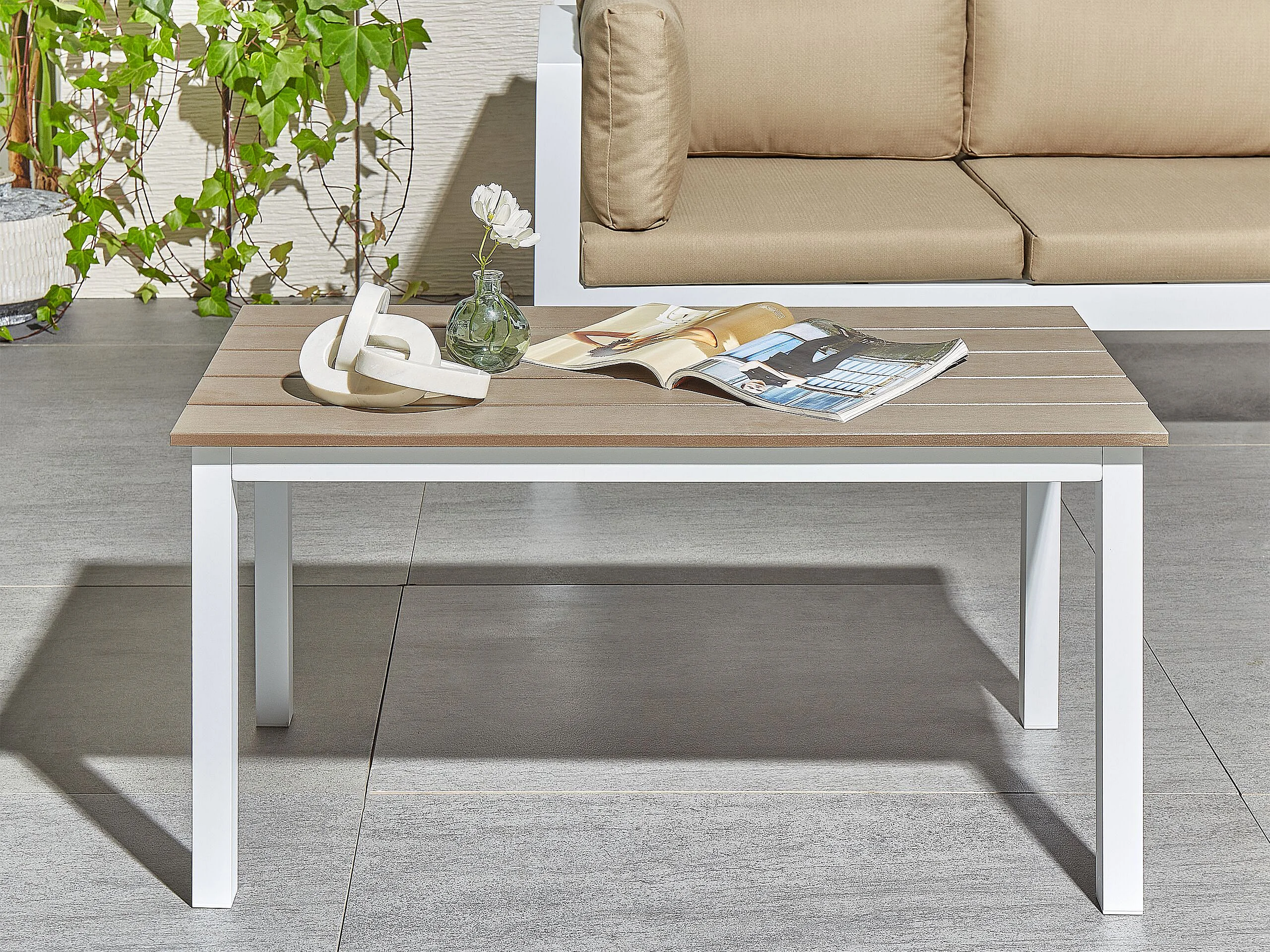 Garten Beistelltisch Kunstholz hellbraun / weiß 96x52 cm rechteckig Messina