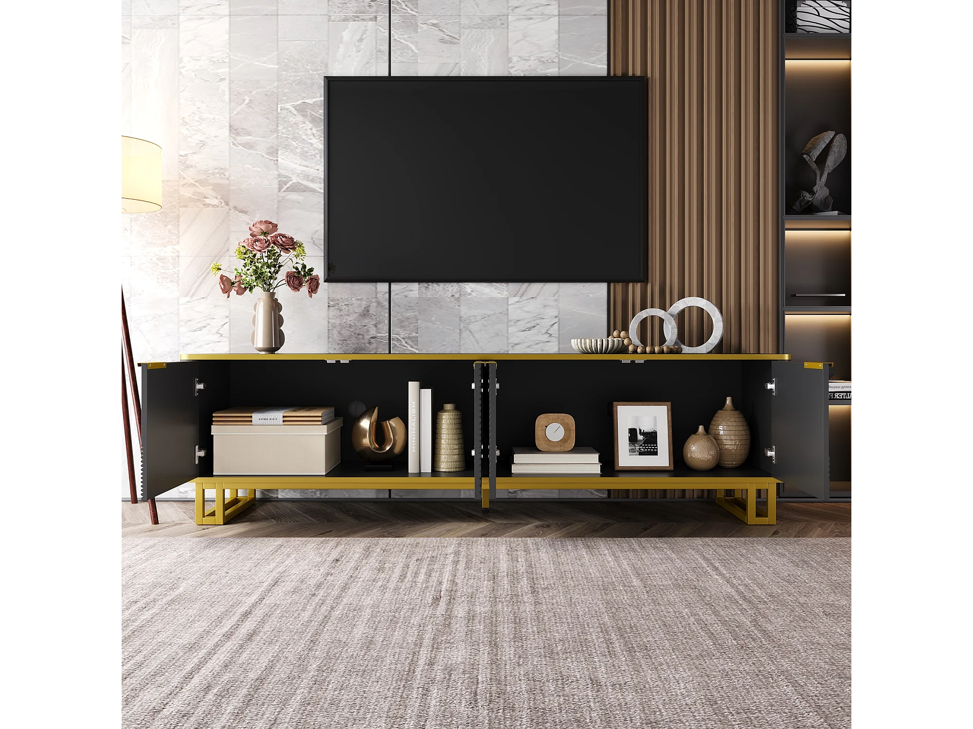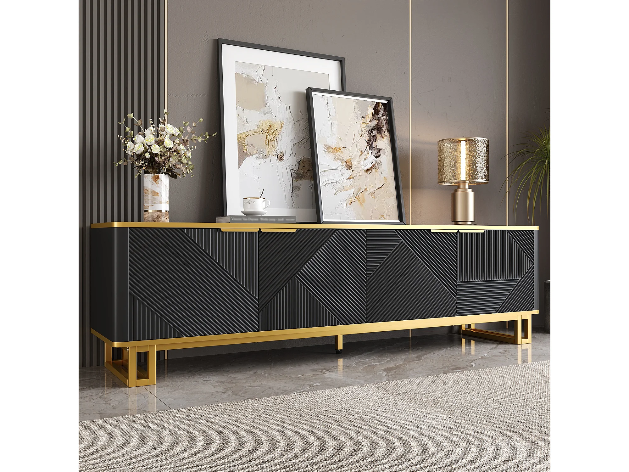 Geometrischer TV-Ständer mit 4 Türen – 160 x 37,5 x 48 cm – einzigartiges Design – MDF – schwarz