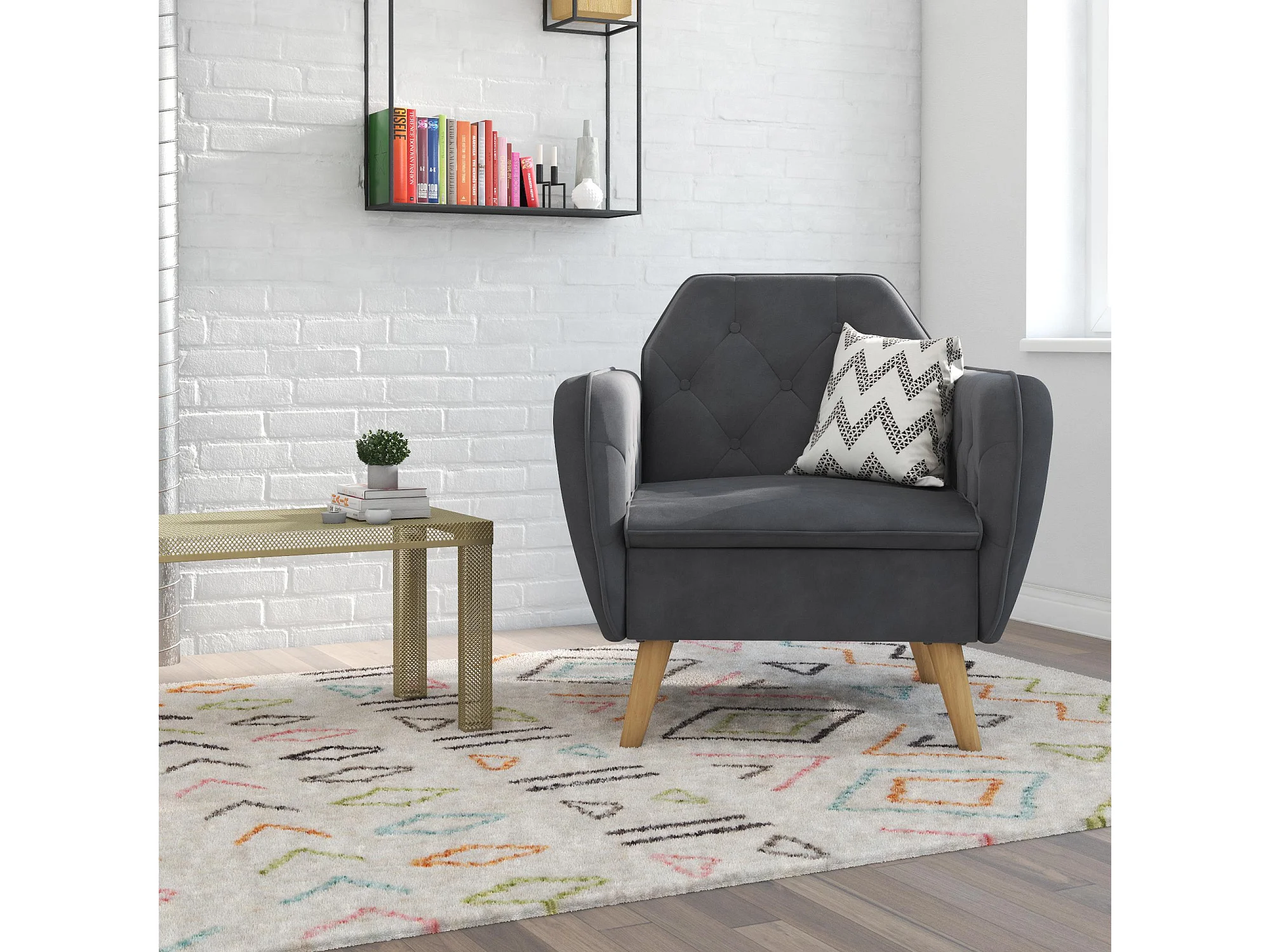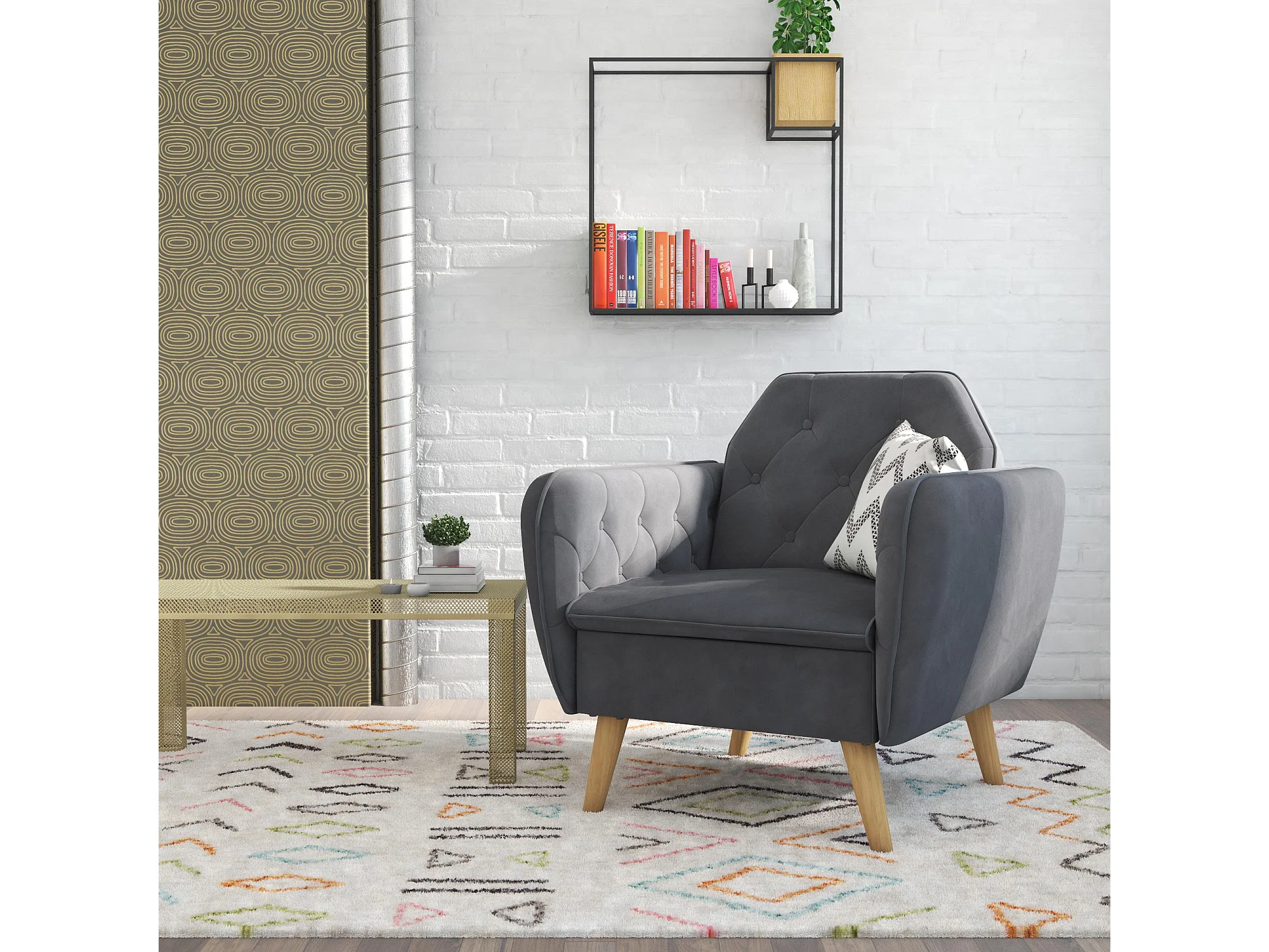Gepolsterter Akzentstuhl aus Samt, grau