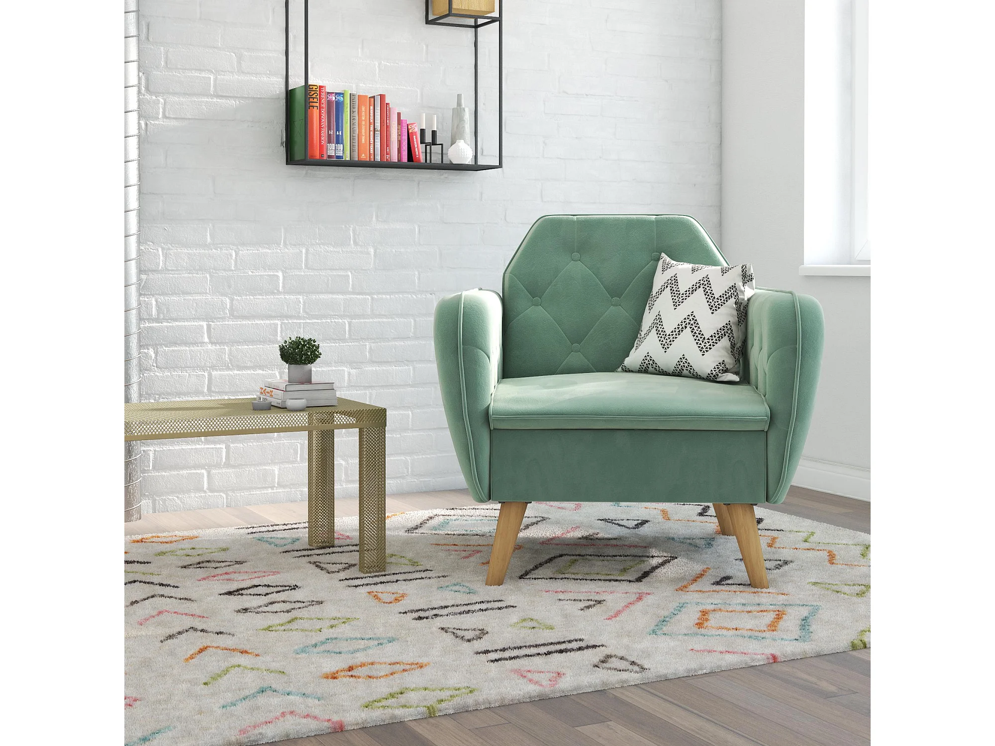 Gepolsterter Akzentstuhl aus Samt, hellgrün