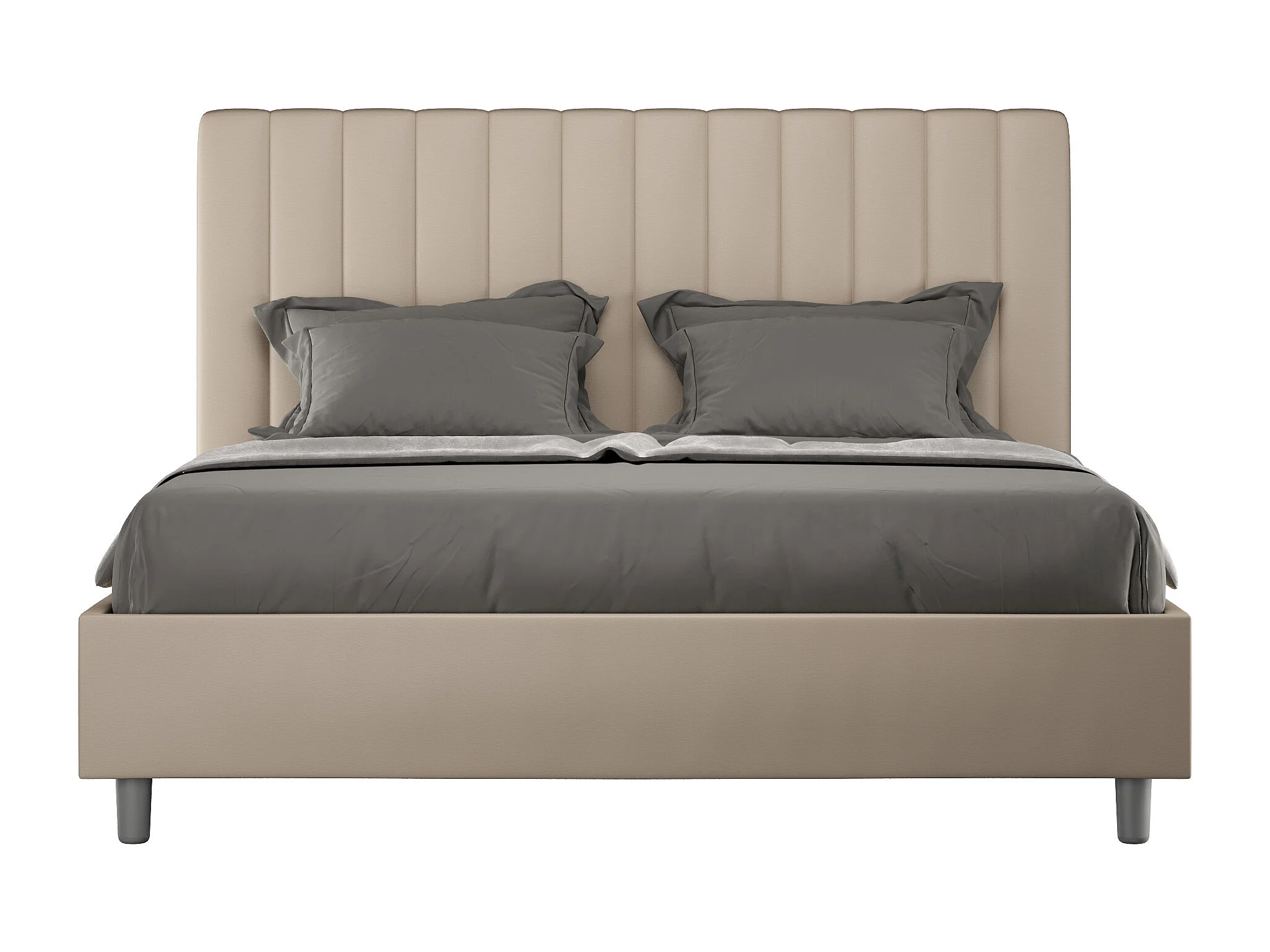 Gepolstertes Bett mit Bettkasten 160x190 mit Kunstlederbezug Taubengrau Agueda