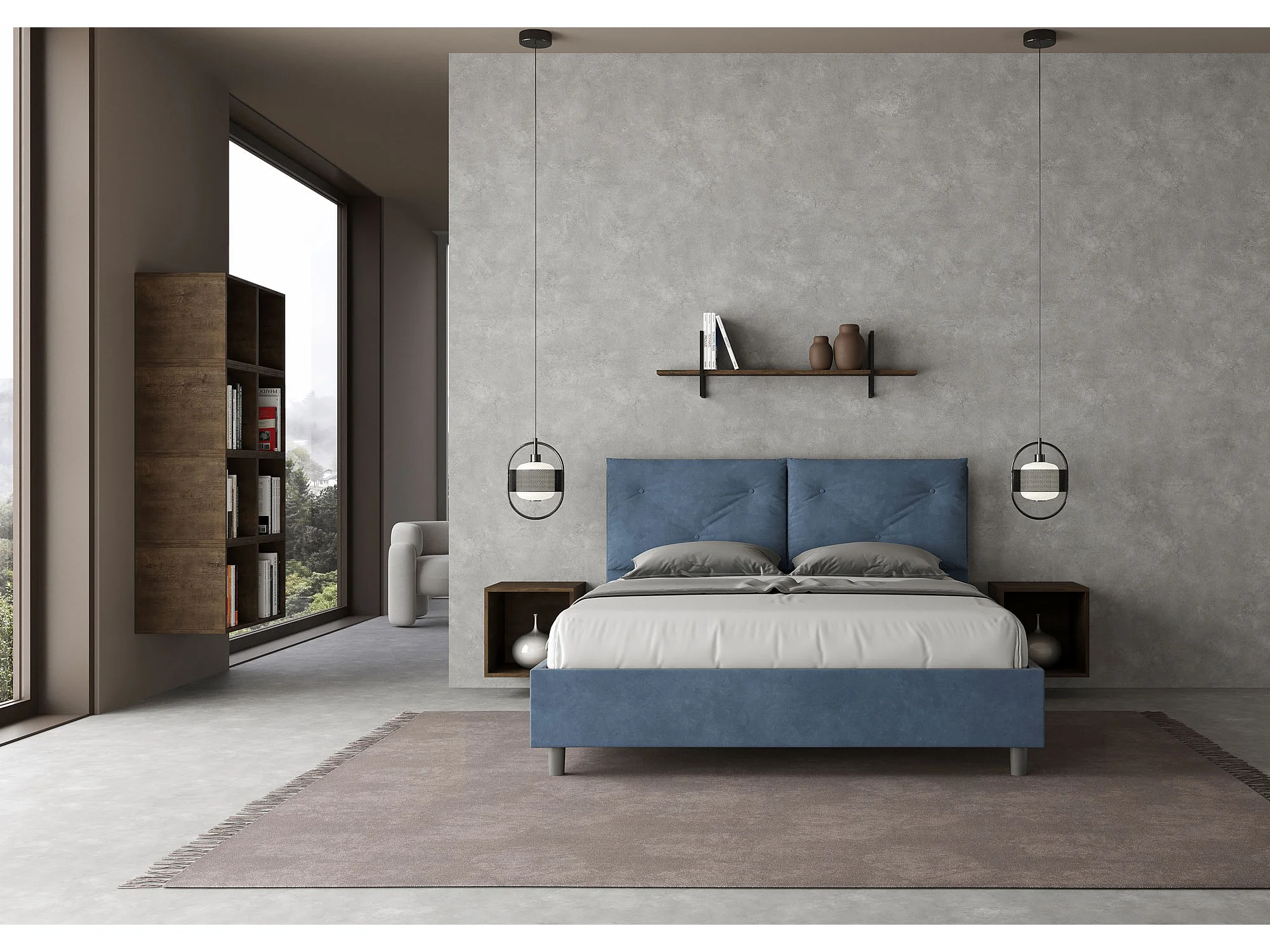 Gepolstertes Bett mit Bettkasten 160x200 mit Mikrofaserbezug Blau Appia