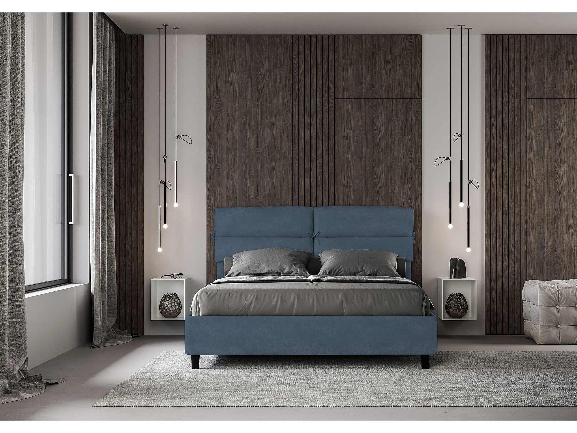 Gepolstertes Bett mit Bettkasten 160x200 mit Mikrofaserbezug Blau Nandy