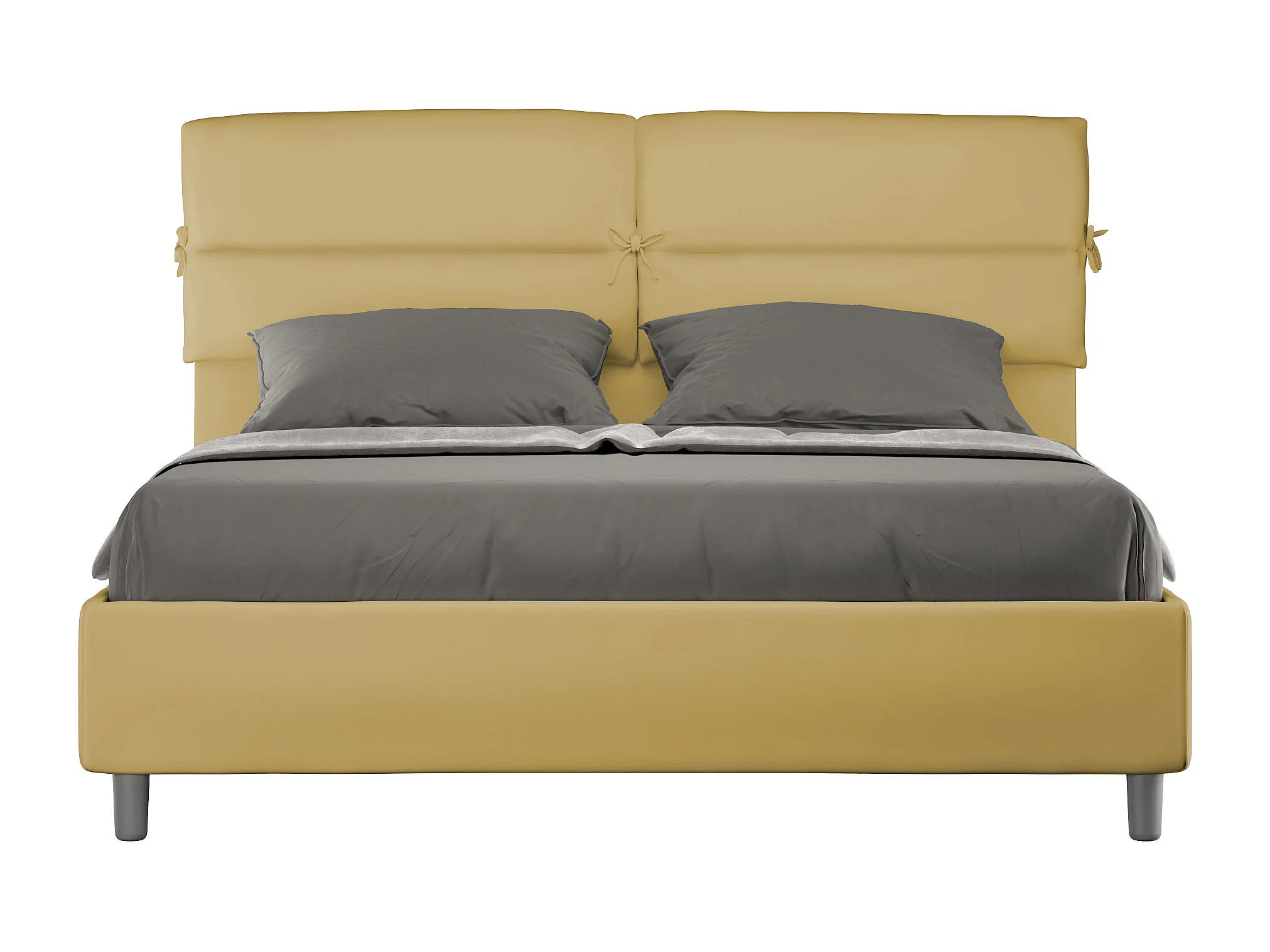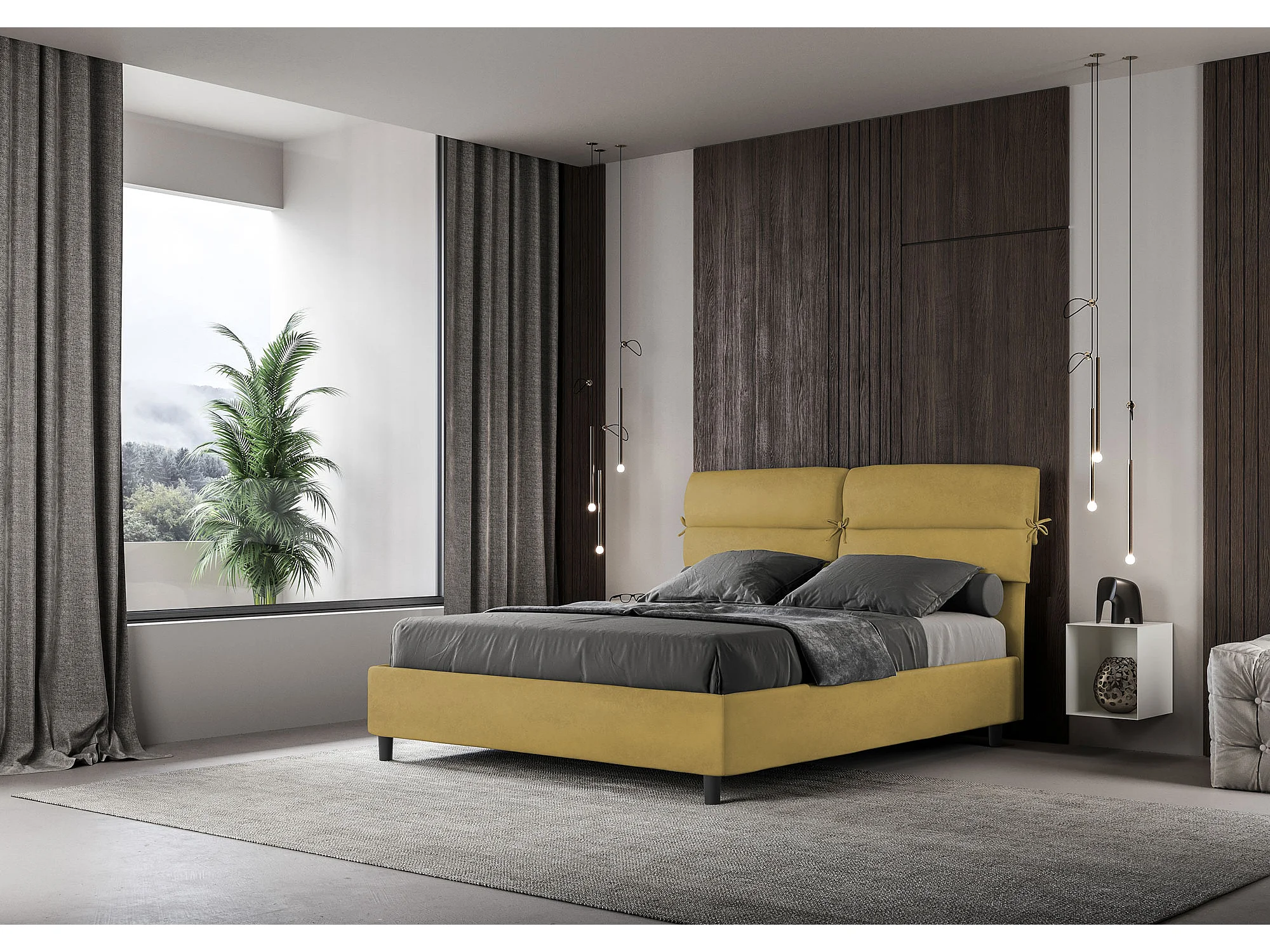 Gepolstertes Bett mit Bettkasten 160x200 mit Mikrofaserbezug Ocker Nandy