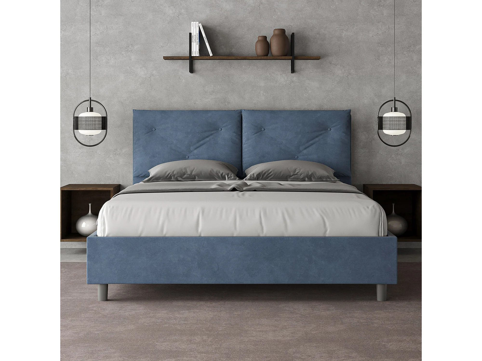 Gepolstertes Bett mit Bettkasten 160x210 mit Mikrofaserbezug Blau Appia