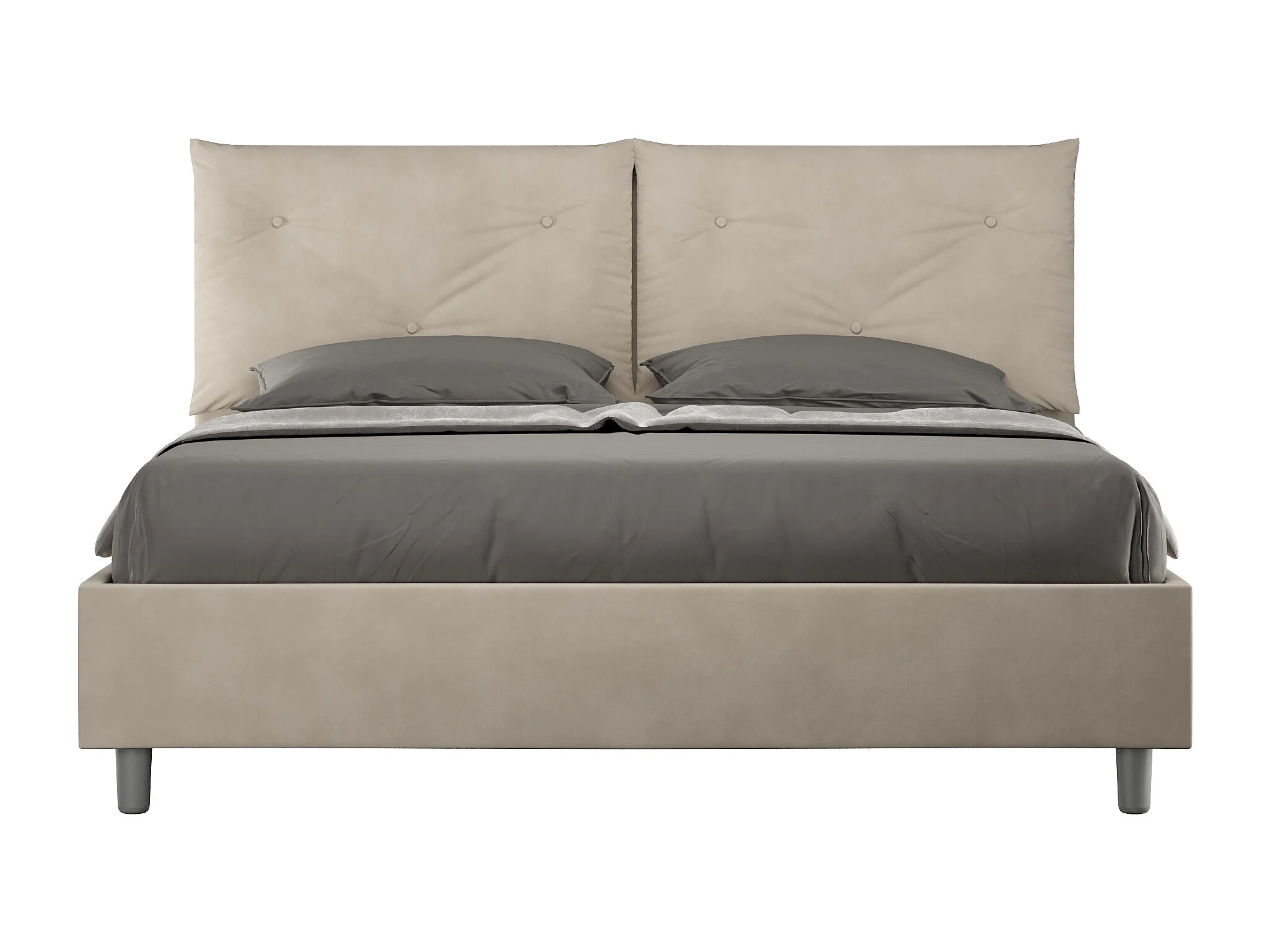 Gepolstertes Bett mit Bettkasten 160x210 mit Mikrofaserbezug Sandfarbe Appia