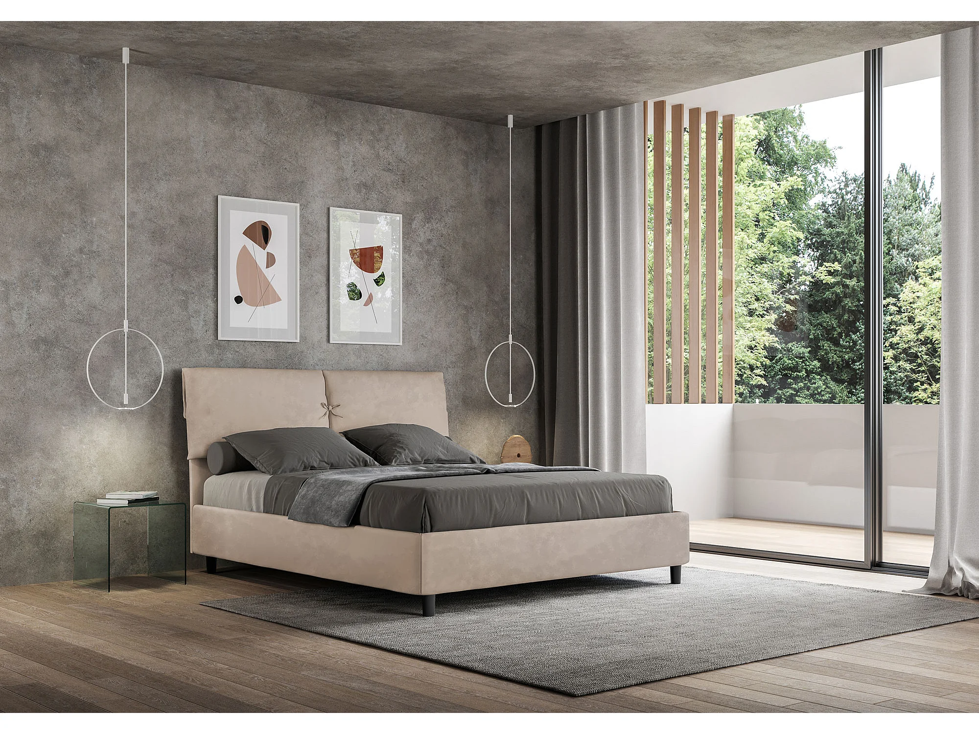 Gepolstertes Bett mit Bettkasten 160x210 mit Mikrofaserbezug Sandfarbe Mados