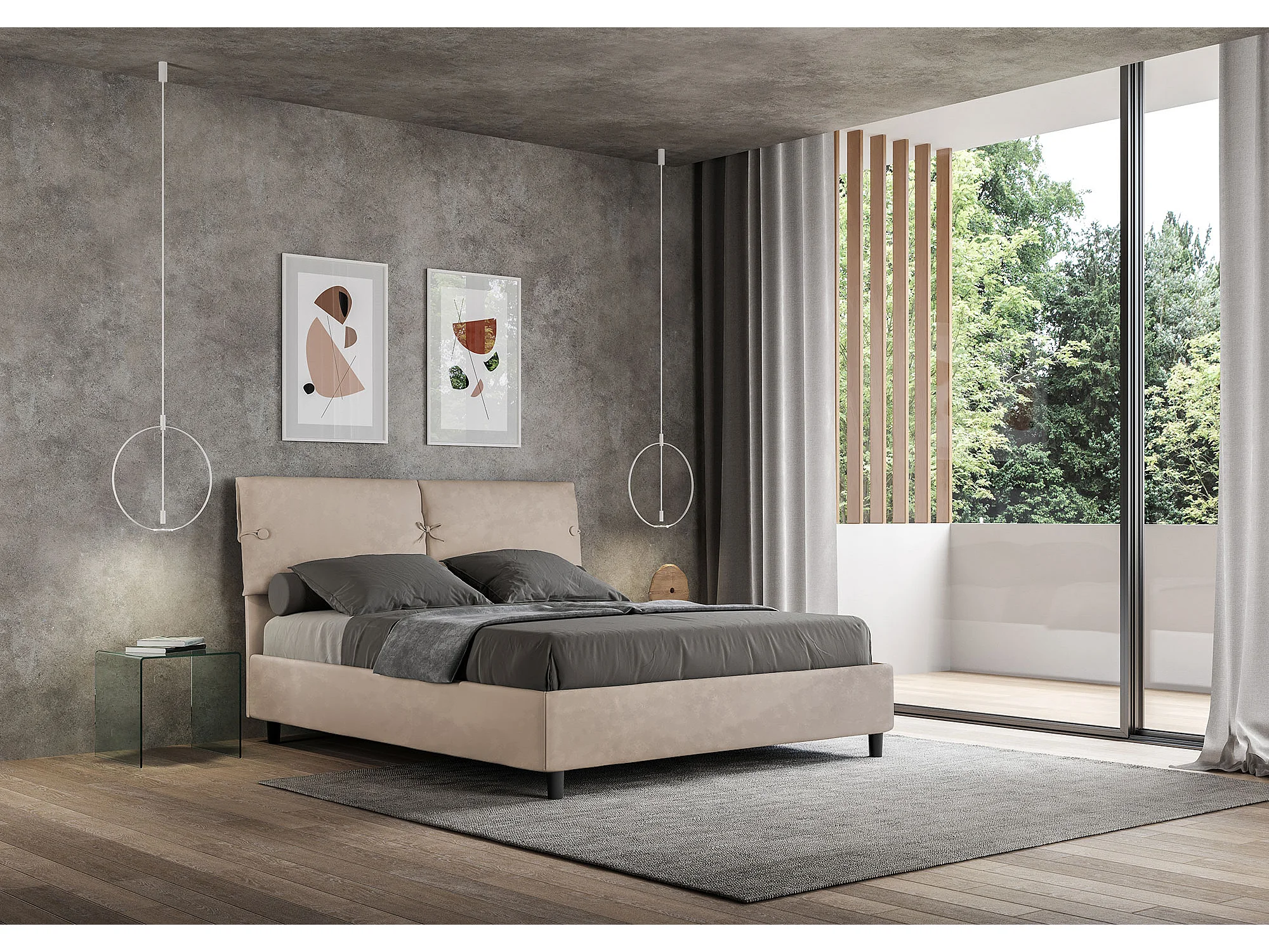 Gepolstertes Bett mit Bettkasten 160x210 mit Mikrofaserbezug Sandfarbe Sleeper