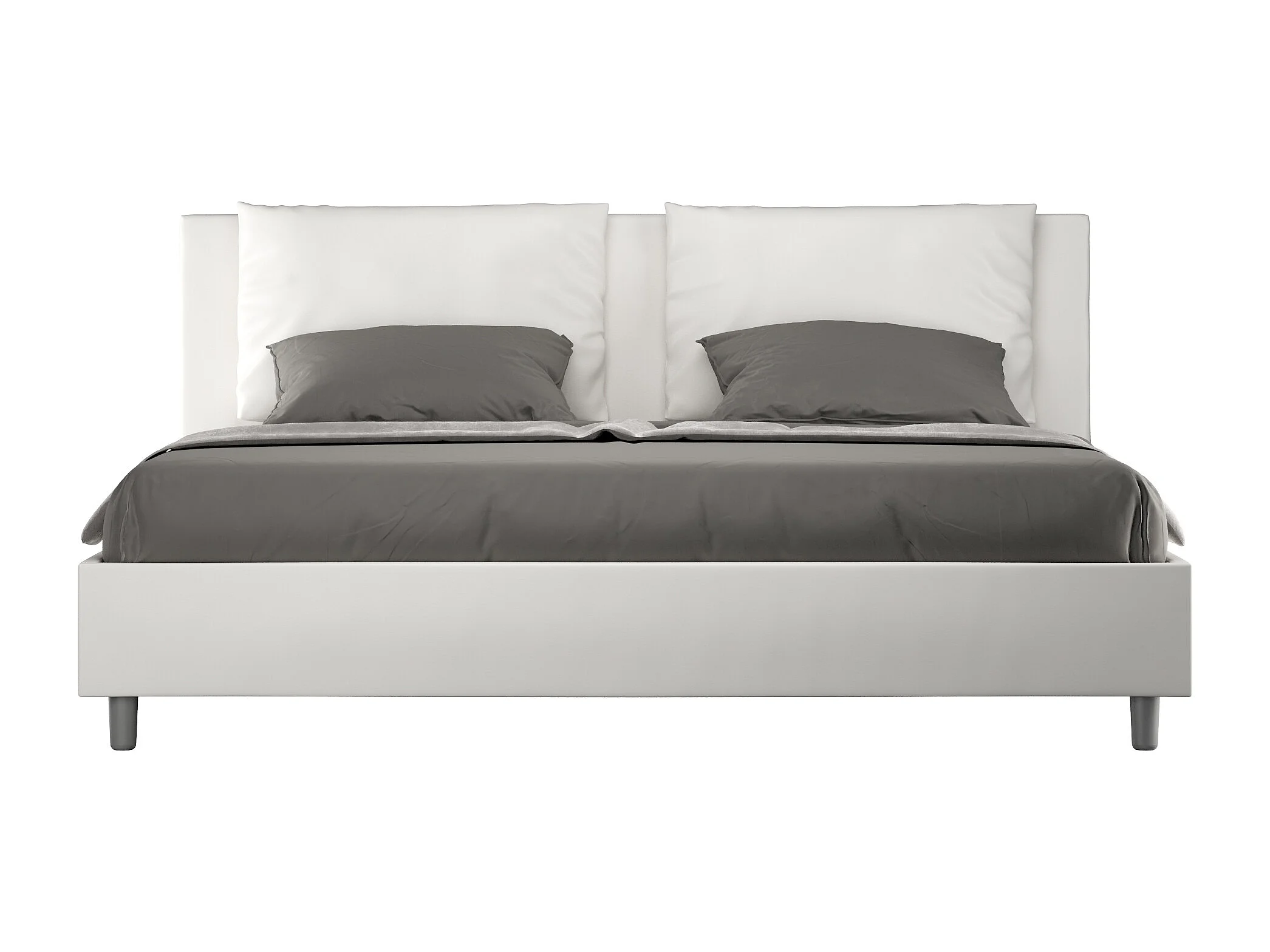 Gepolstertes Bett mit Bettkasten 200x200 mit Kunstlederbezug Weiß Antea