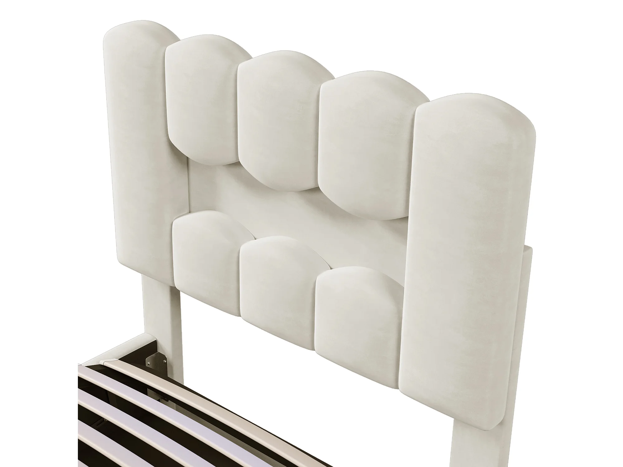 Gepolstertes Bett mit Stauraum 90×200 cm - mit LED-Beleuchtung - verstellbares Kopfteil - Samt - beige (Matratze nicht inbegriffen)