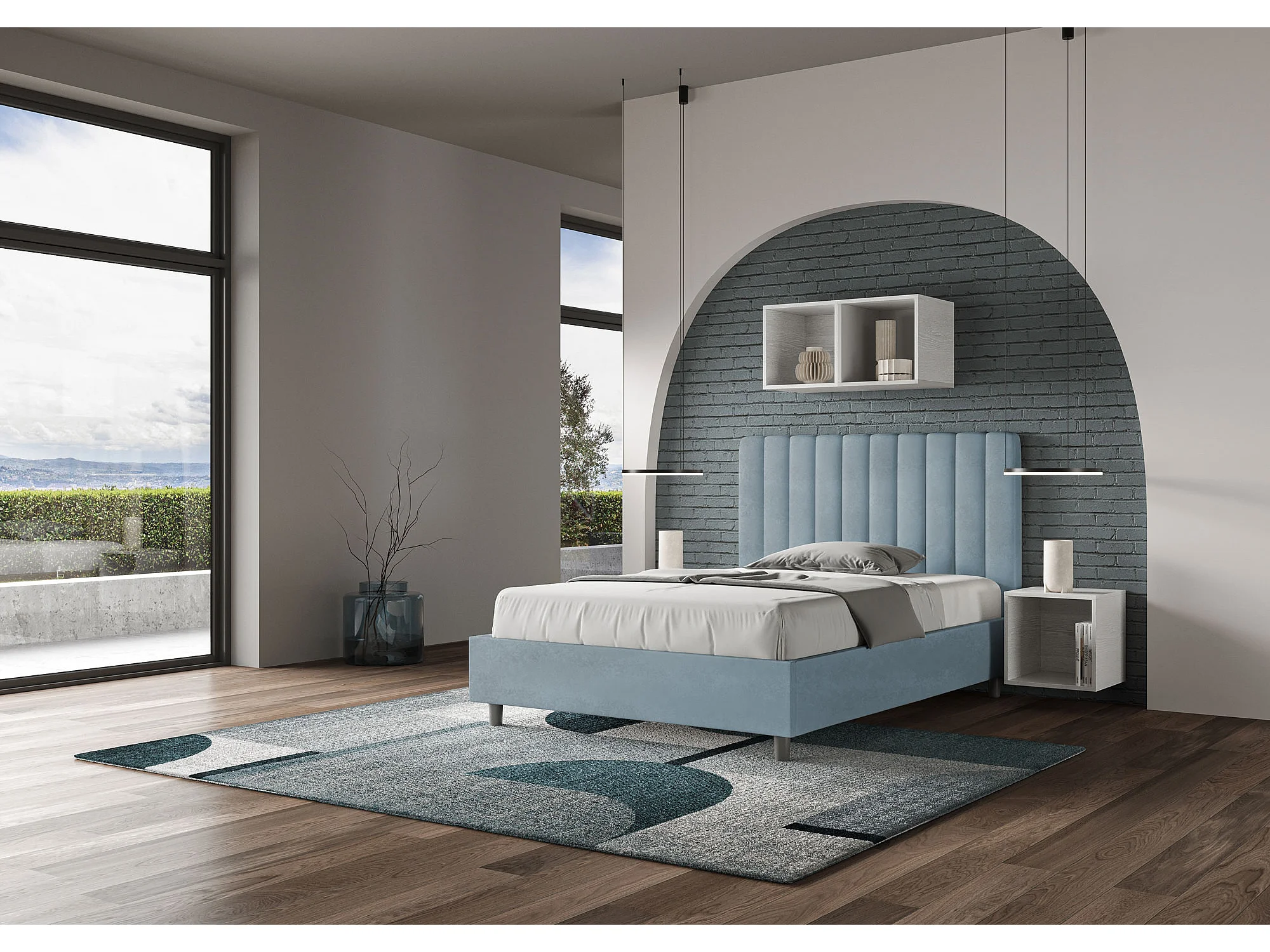Gepolstertes Bett ohne Lattenrost 120x200 mit Mikrofaserbezug Himmelblau Agueda