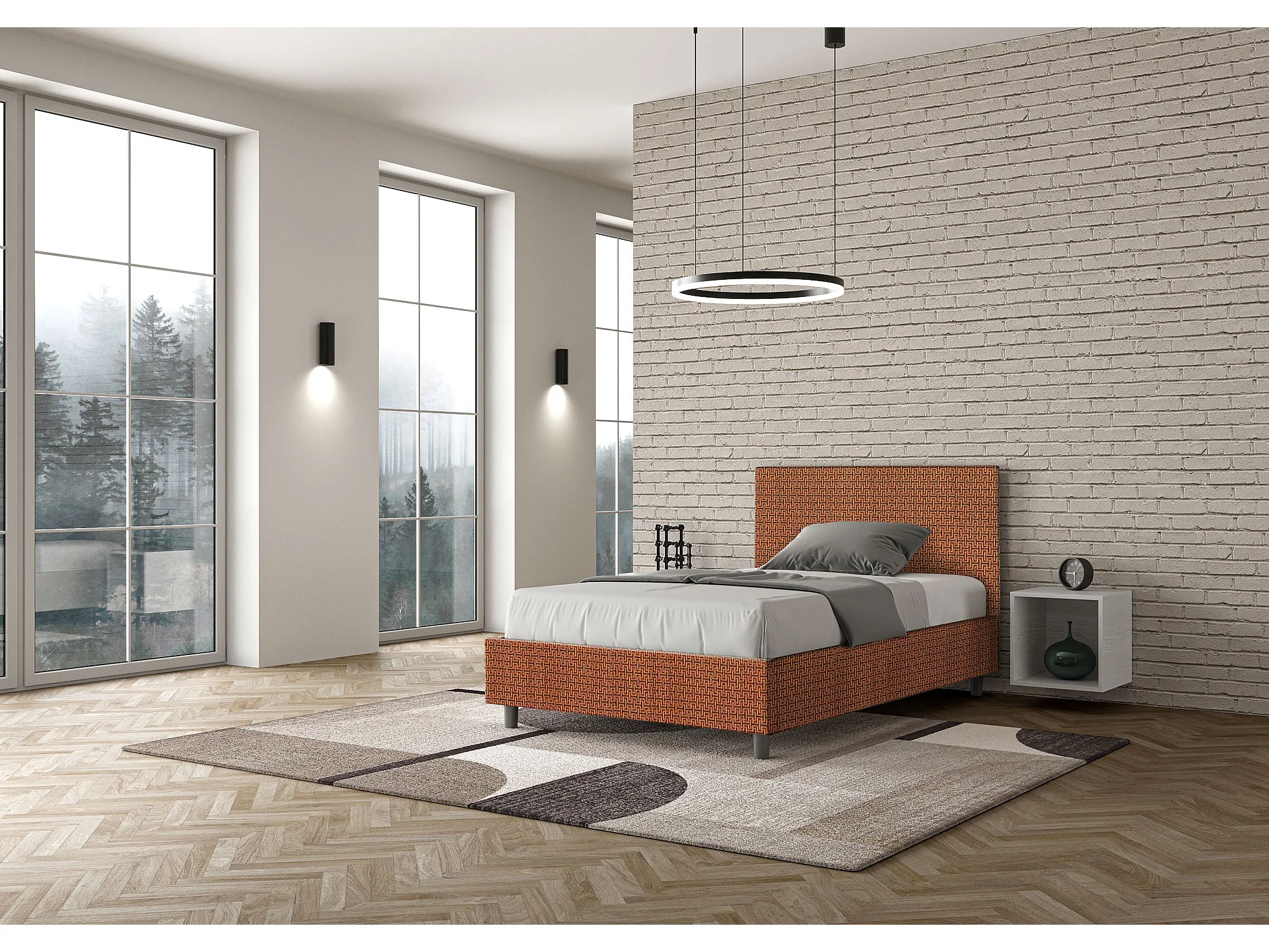Gepolstertes Bett ohne Lattenrost 120x210 mit Stoffbezug Labirinto 4 Orange Adele