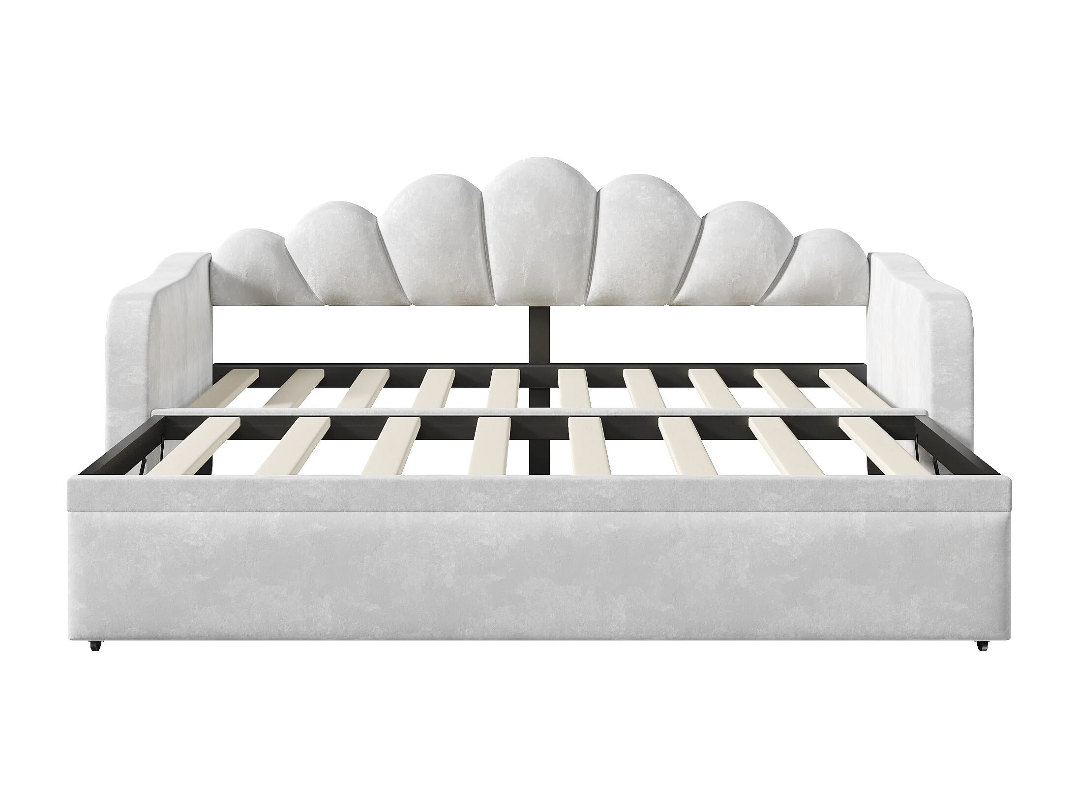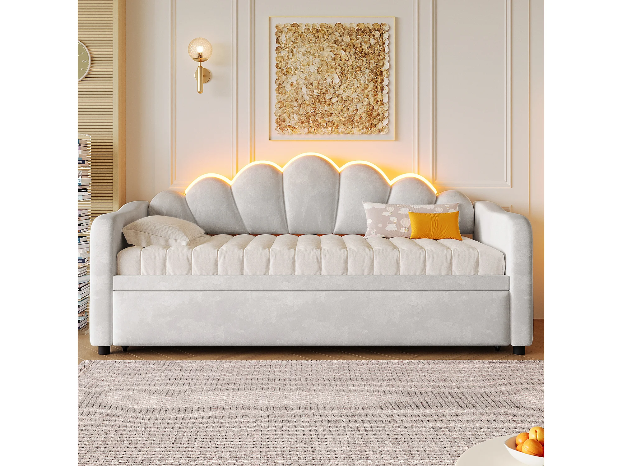 Gepolstertes Schlafsofa 90x200 cm - Mit Gästebett - Integrierte LED-Beleuchtung - Samt + MDF - Grau​ (ohne Matratze)