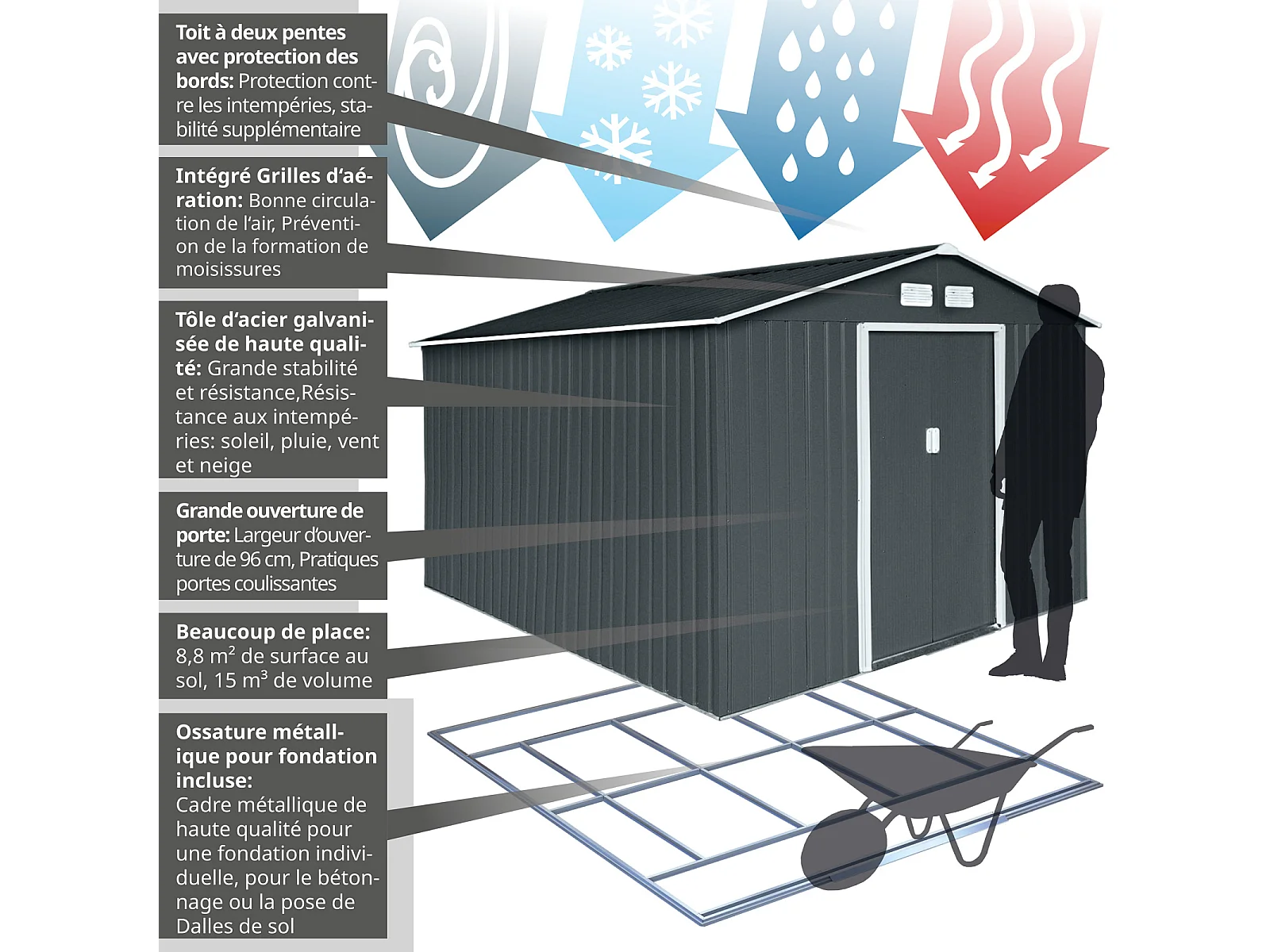 GERÄTEHAUS mit Bodenrahmen Metall S300 Grau