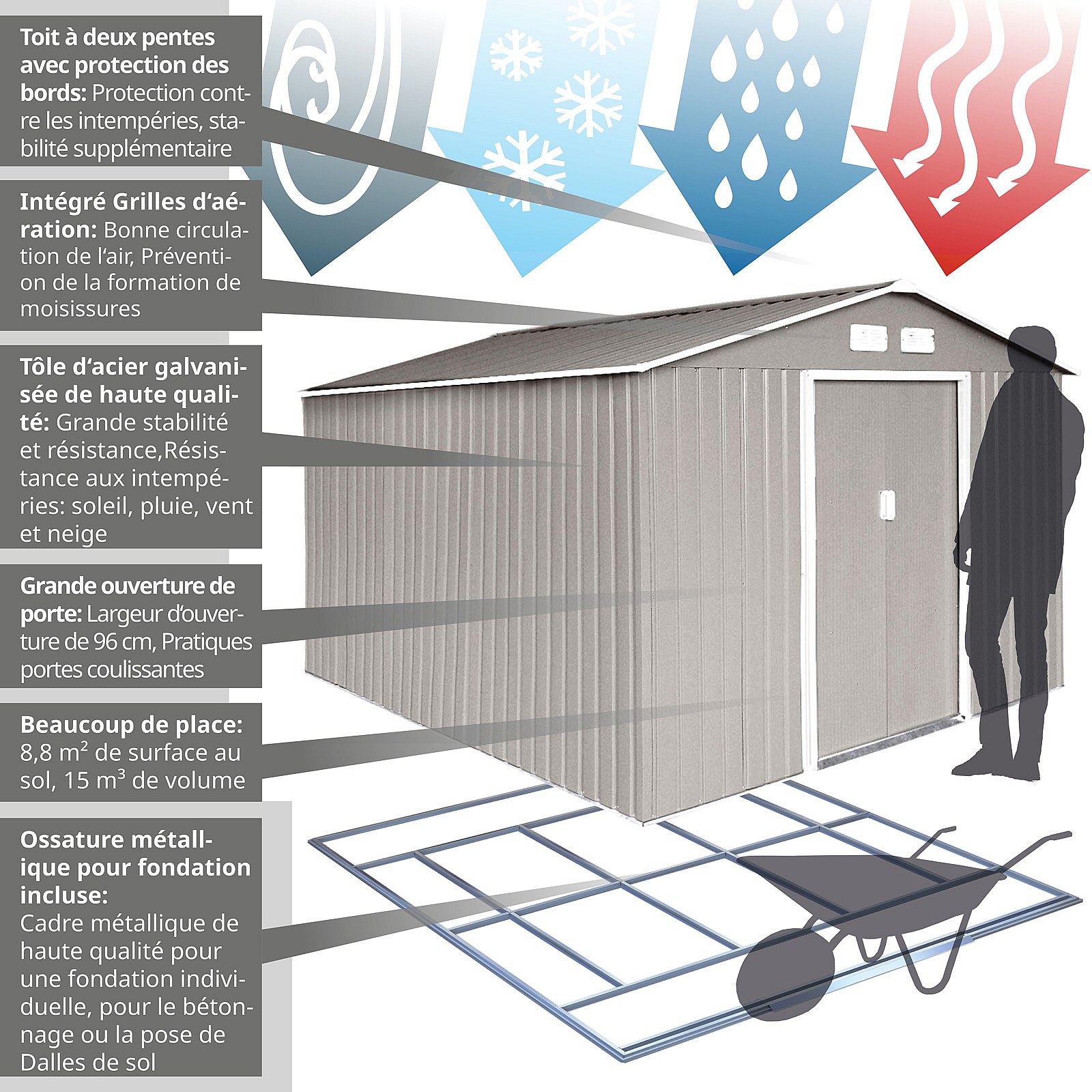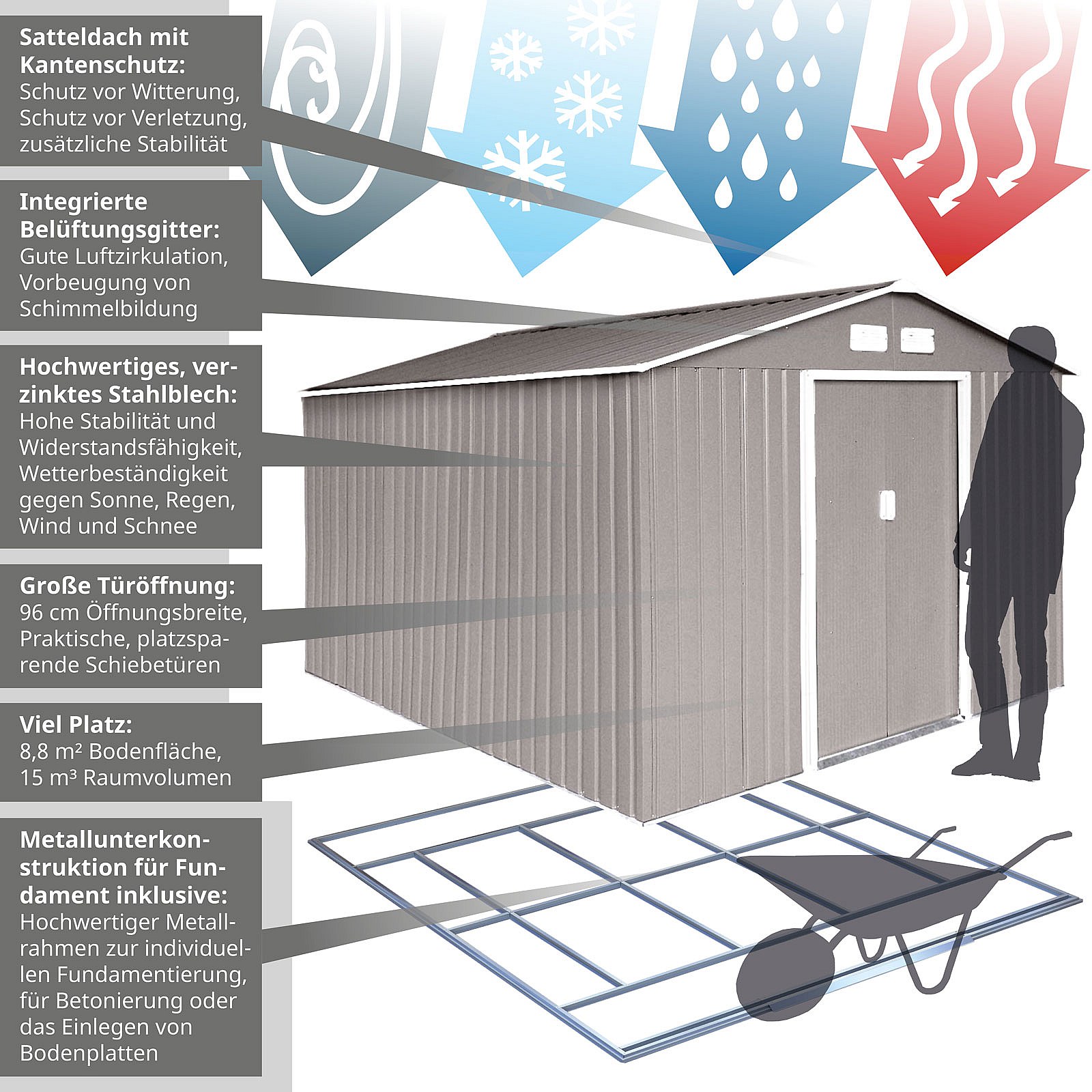 GERÄTEHAUS mit Bodenrahmen Metall S300 Hellgrau