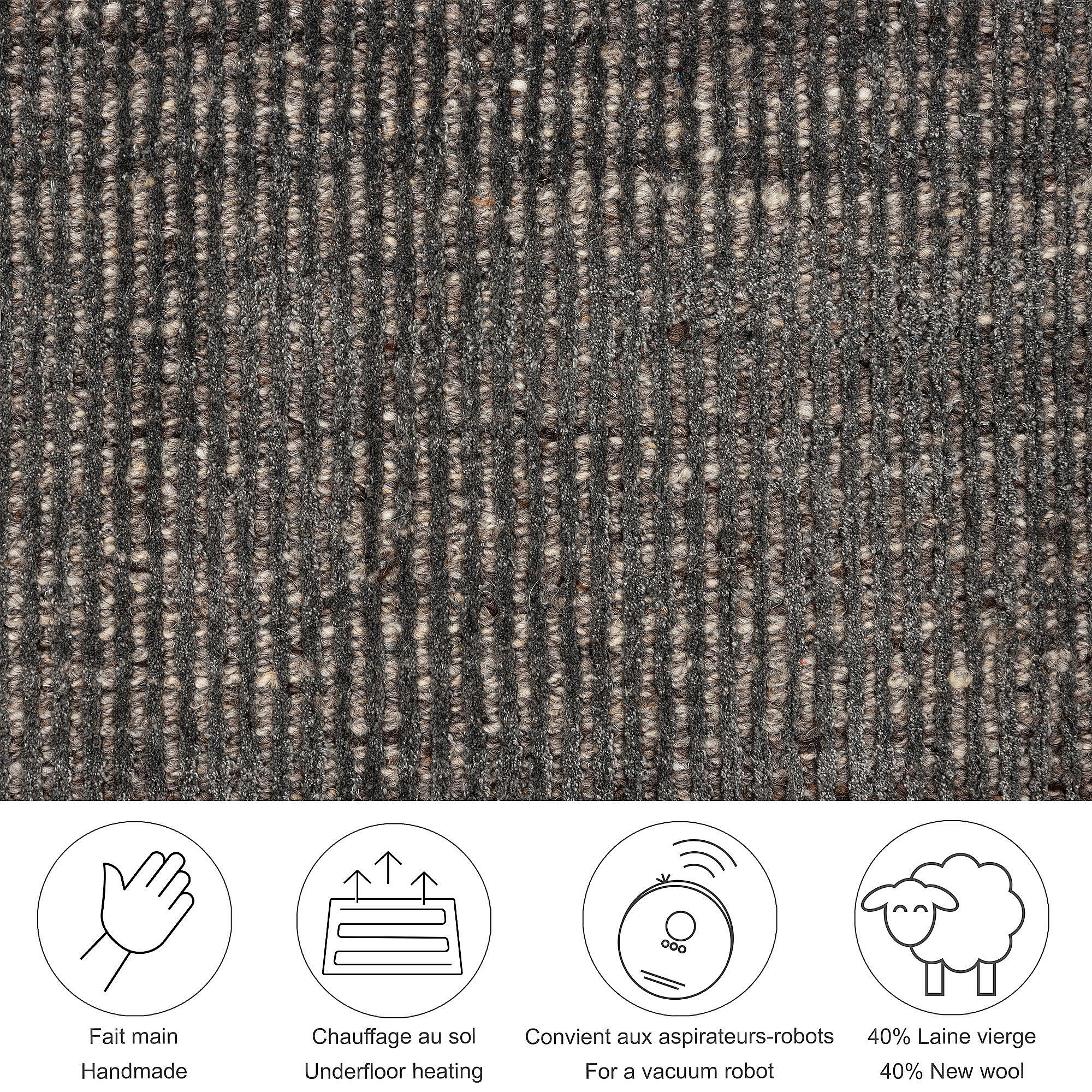 Gestreifter UNI Teppich aus Viskose und Wolle 190x190 cm Anthrazit Venus