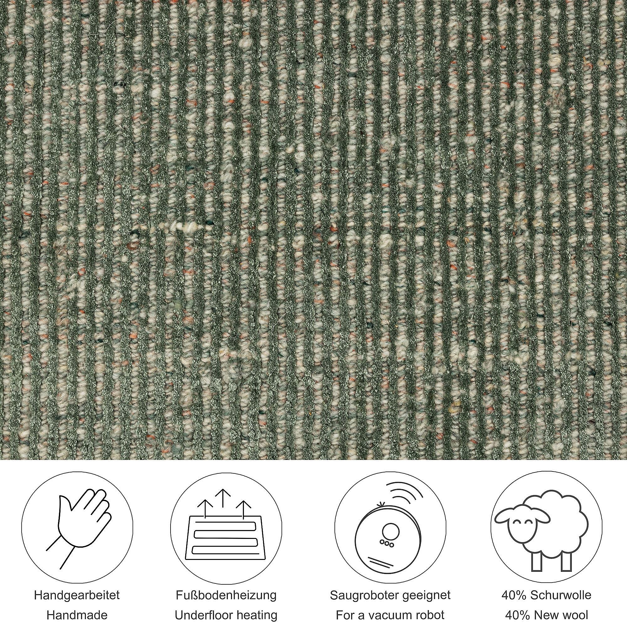 Gestreifter UNI Teppich aus Viskose und Wolle 190x290 cm Grün Venus
