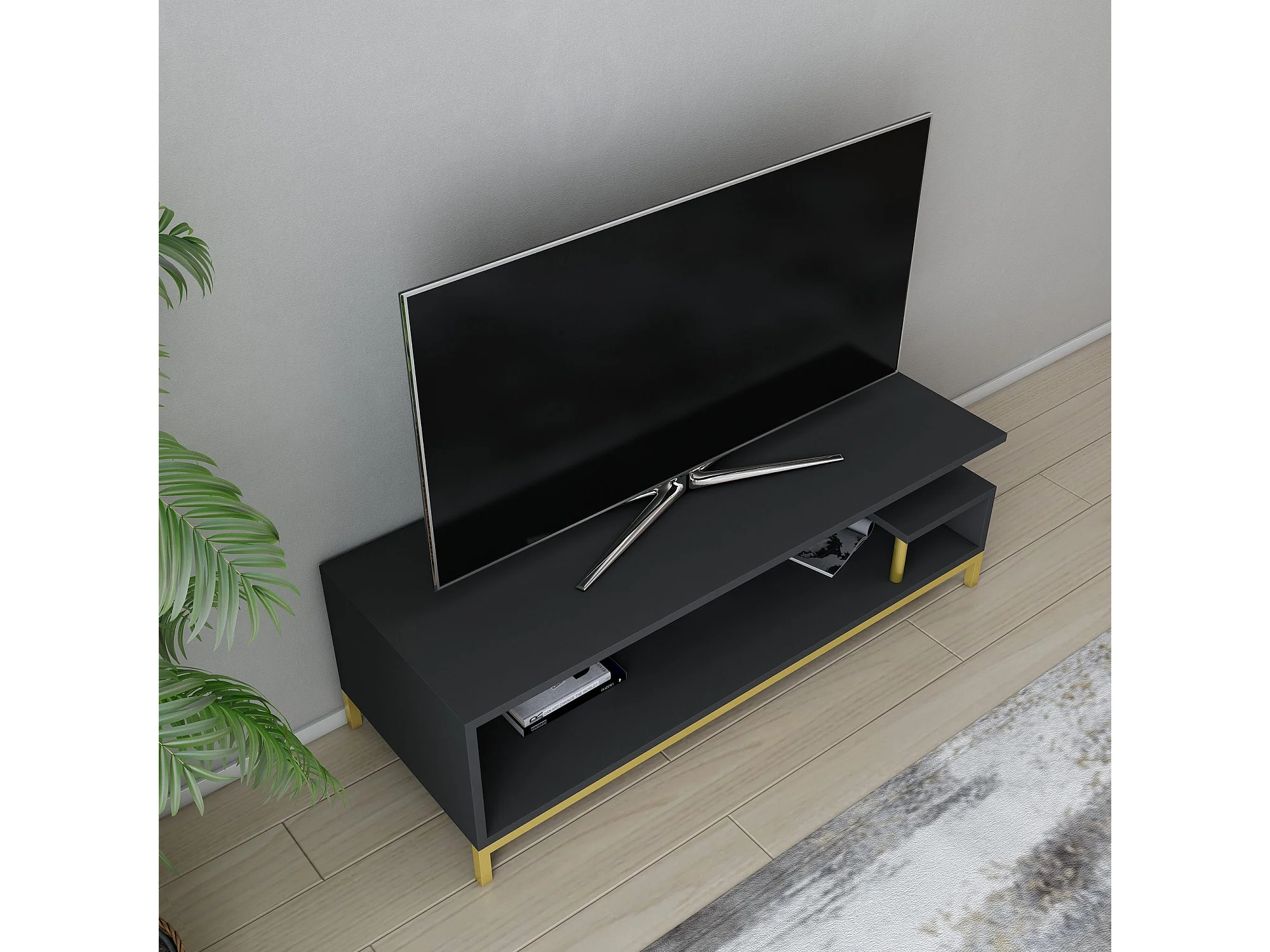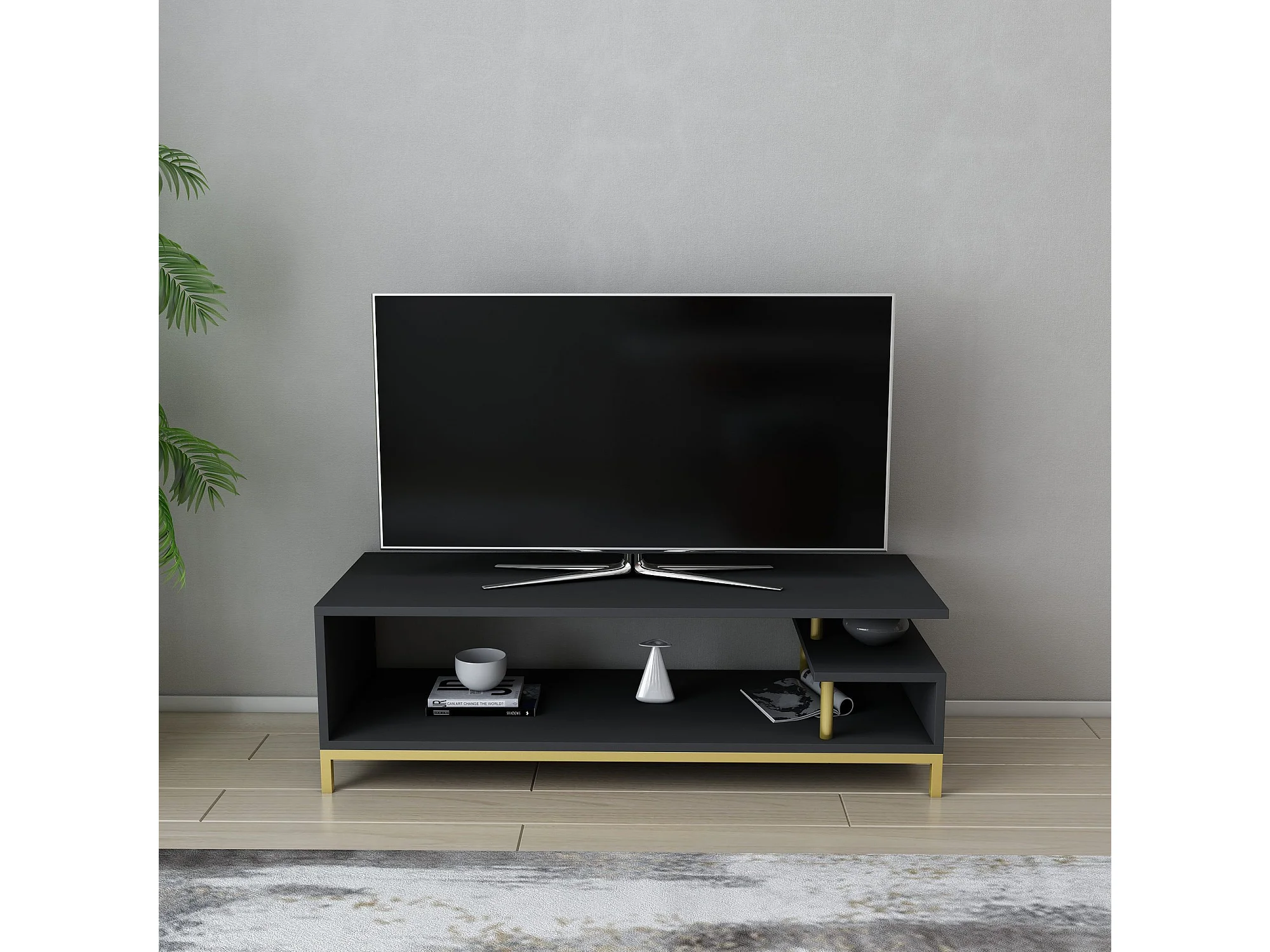 TV-Ständer – 120 cm x 48,2 cm x 26,4 cm – Anthrazit und Gold – Melamin