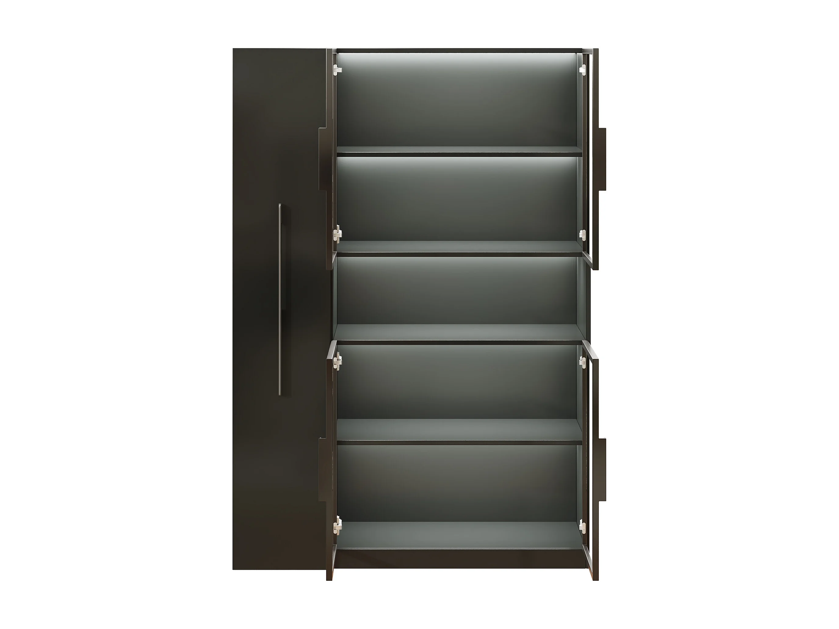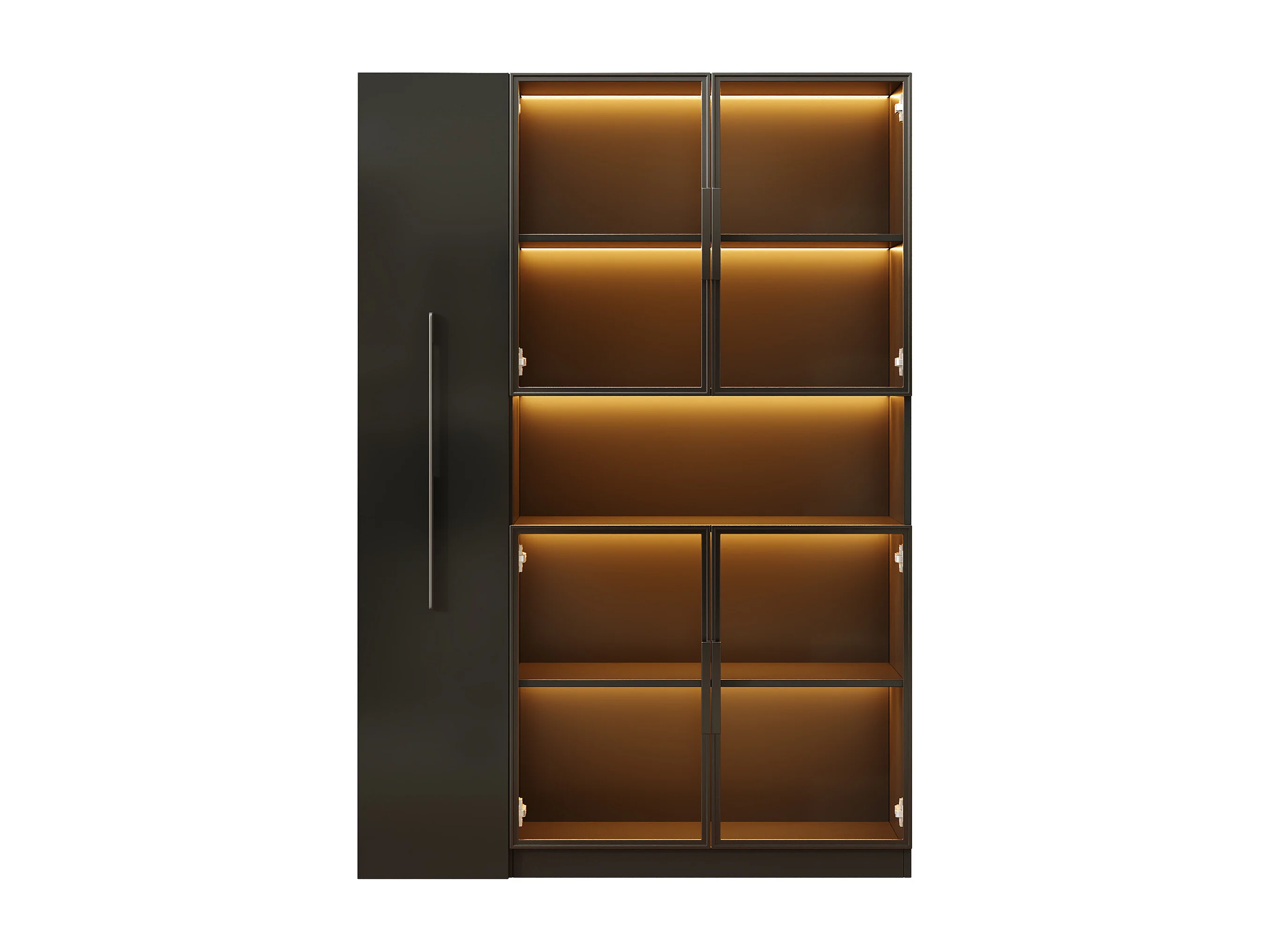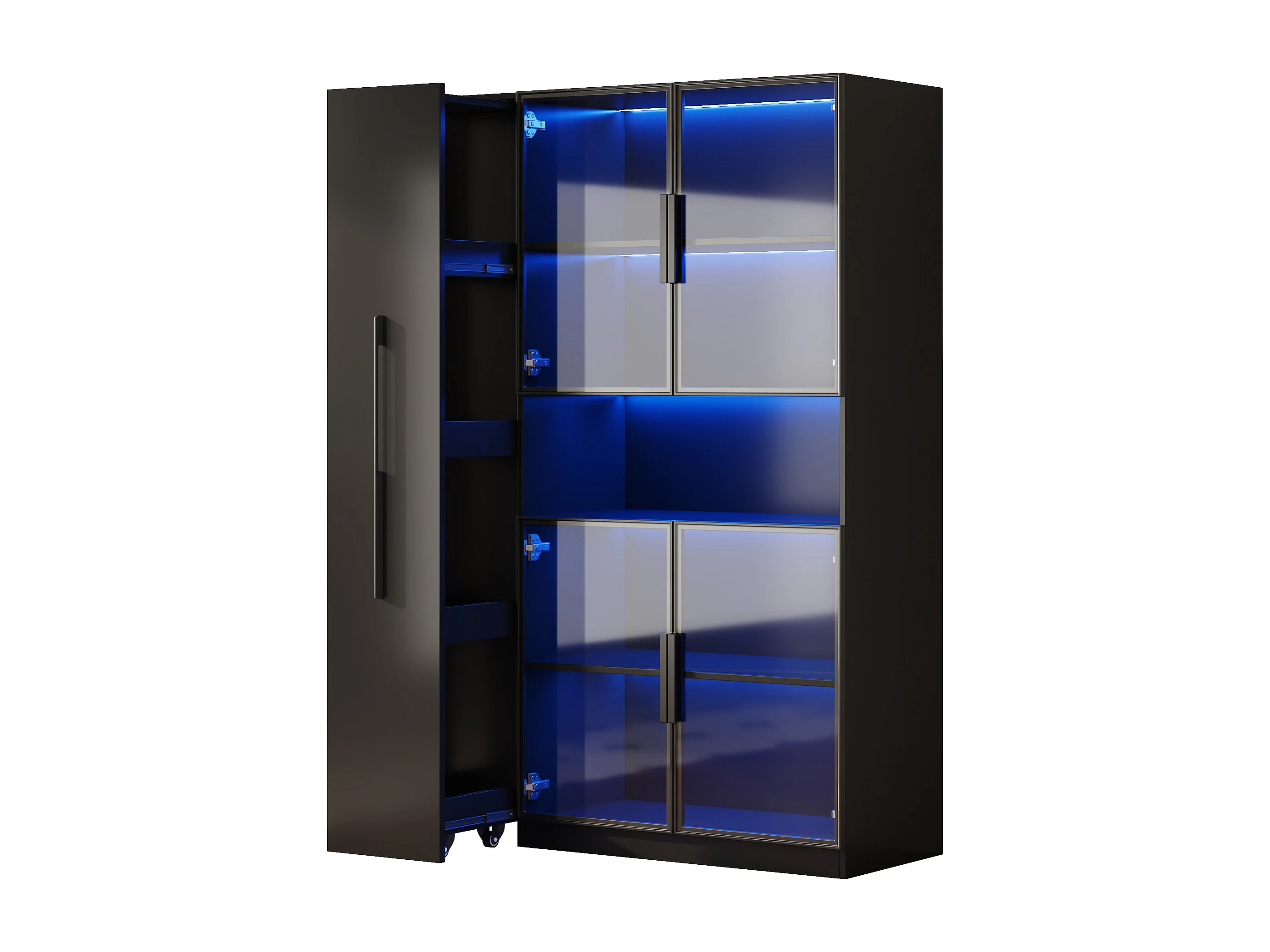 Glasvitrine 110x35x160 cm - LED-Beleuchtung - 4 Glastüren - 1 seitliche Schublade - MDF - Schwarz