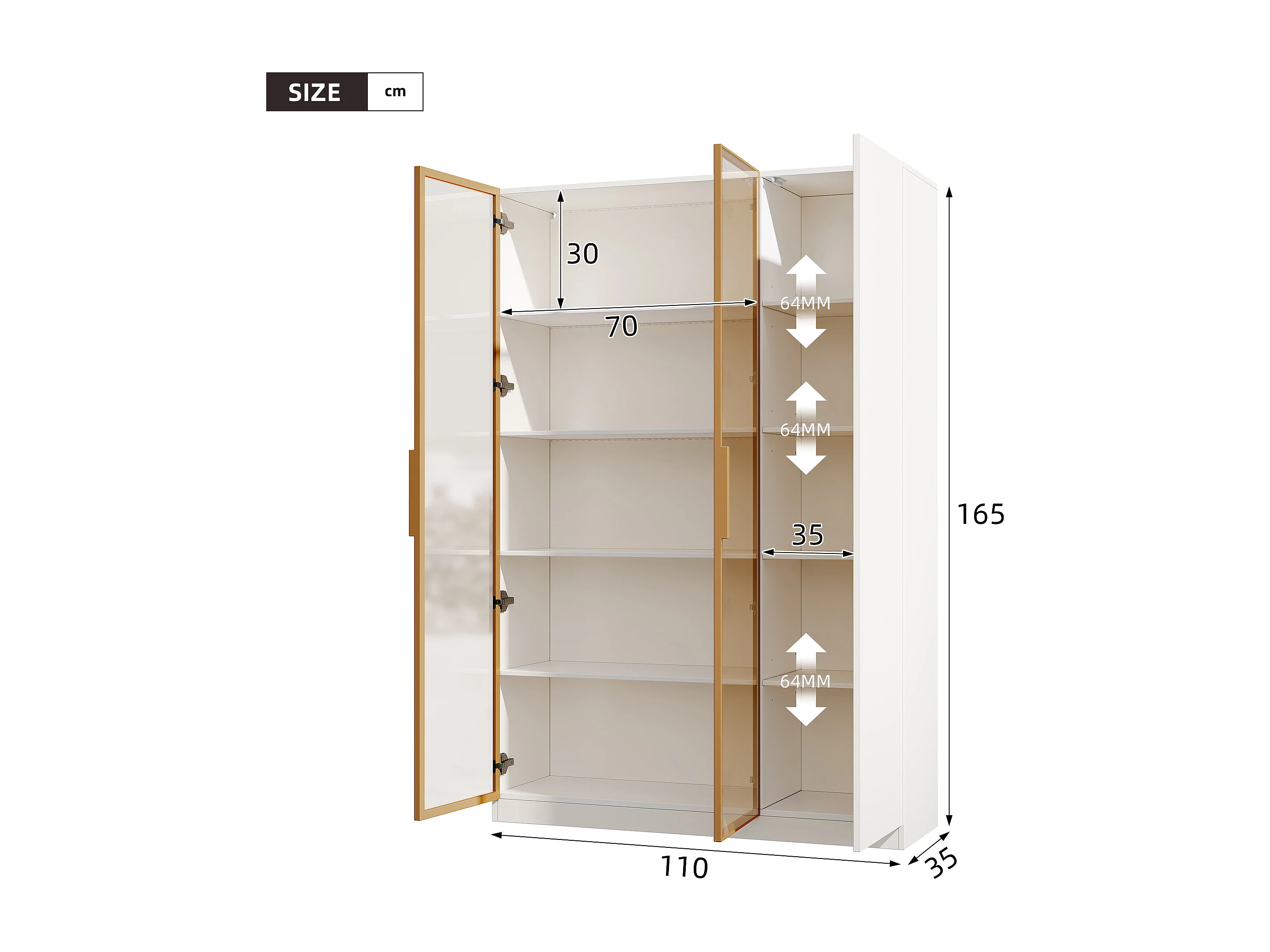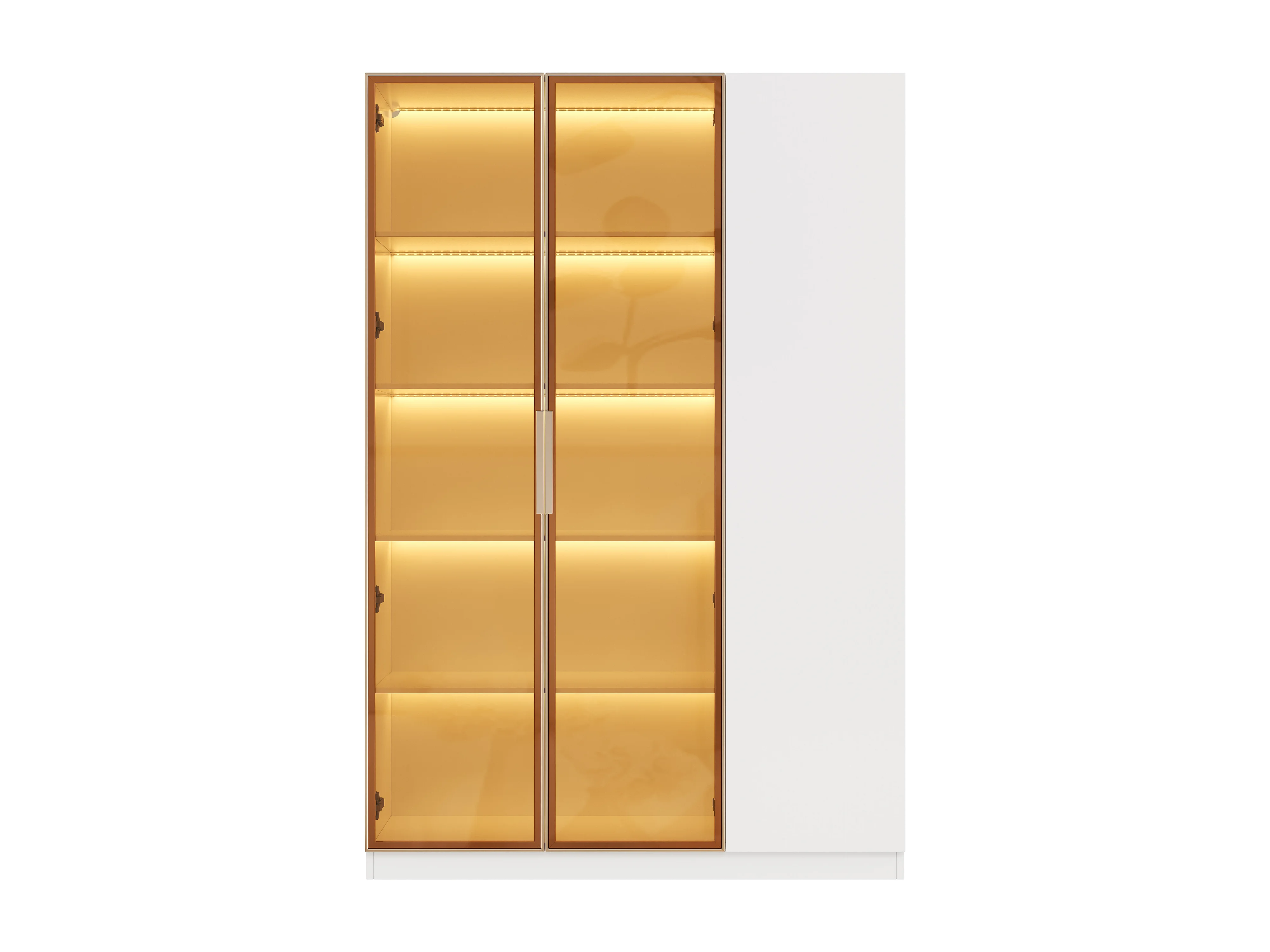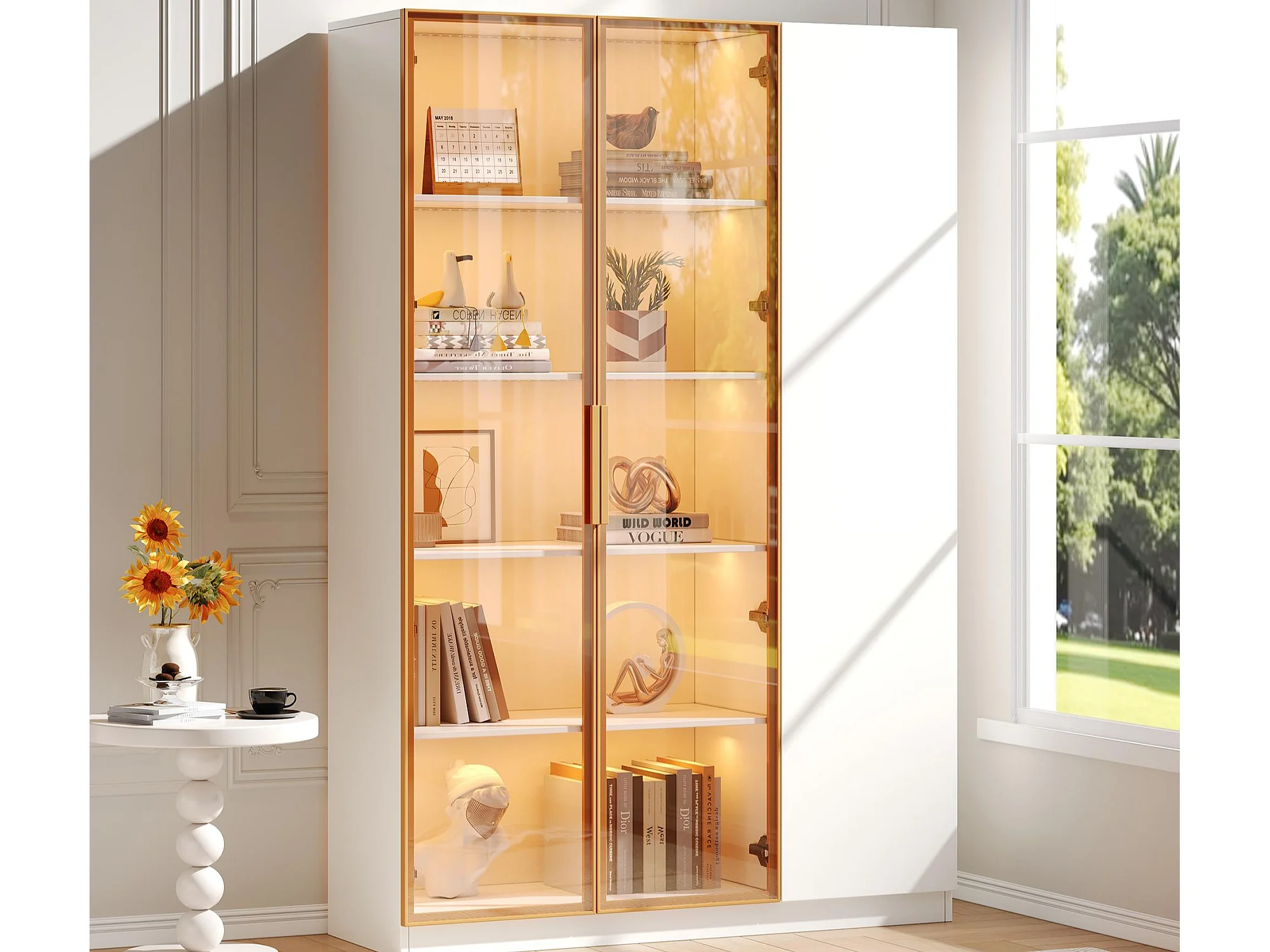 Glasvitrine 165 cm hoch - LED-Beleuchtung - 3 Türen - Höhenverstellbare Einlegeböden - MDF + Spanplatten - Weiß