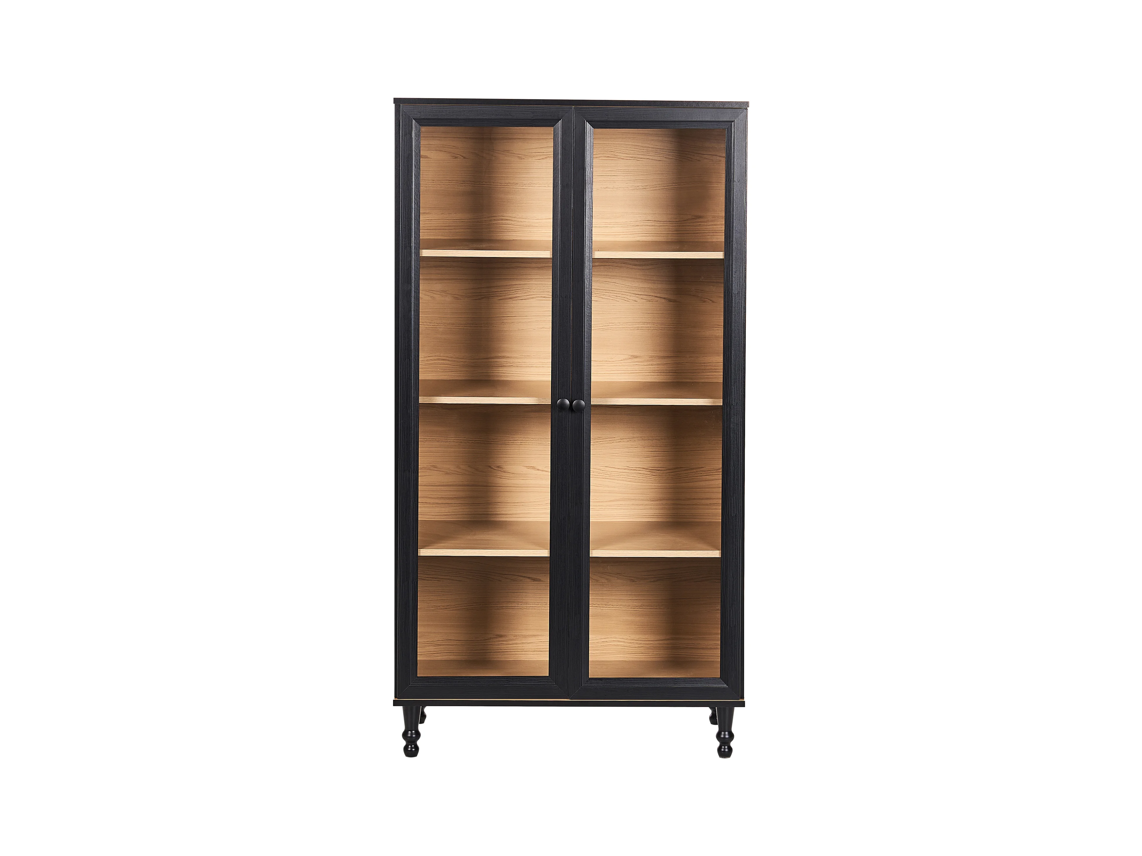 Vitrine mit 3 Regalböden - Holzoptik Esche Portland Schwarz - 85 cm