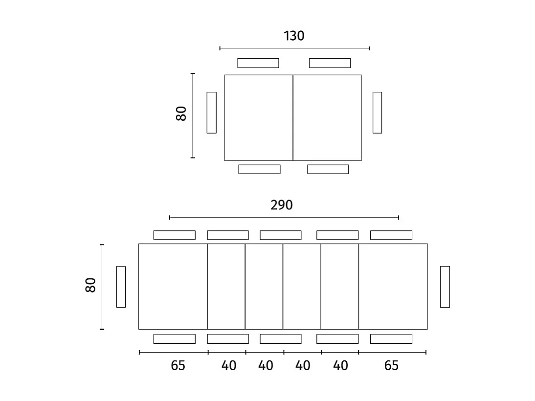 Groß - Ausziehbarer Tisch (130/290 x 80 cm) aus schwarzem Melamin
